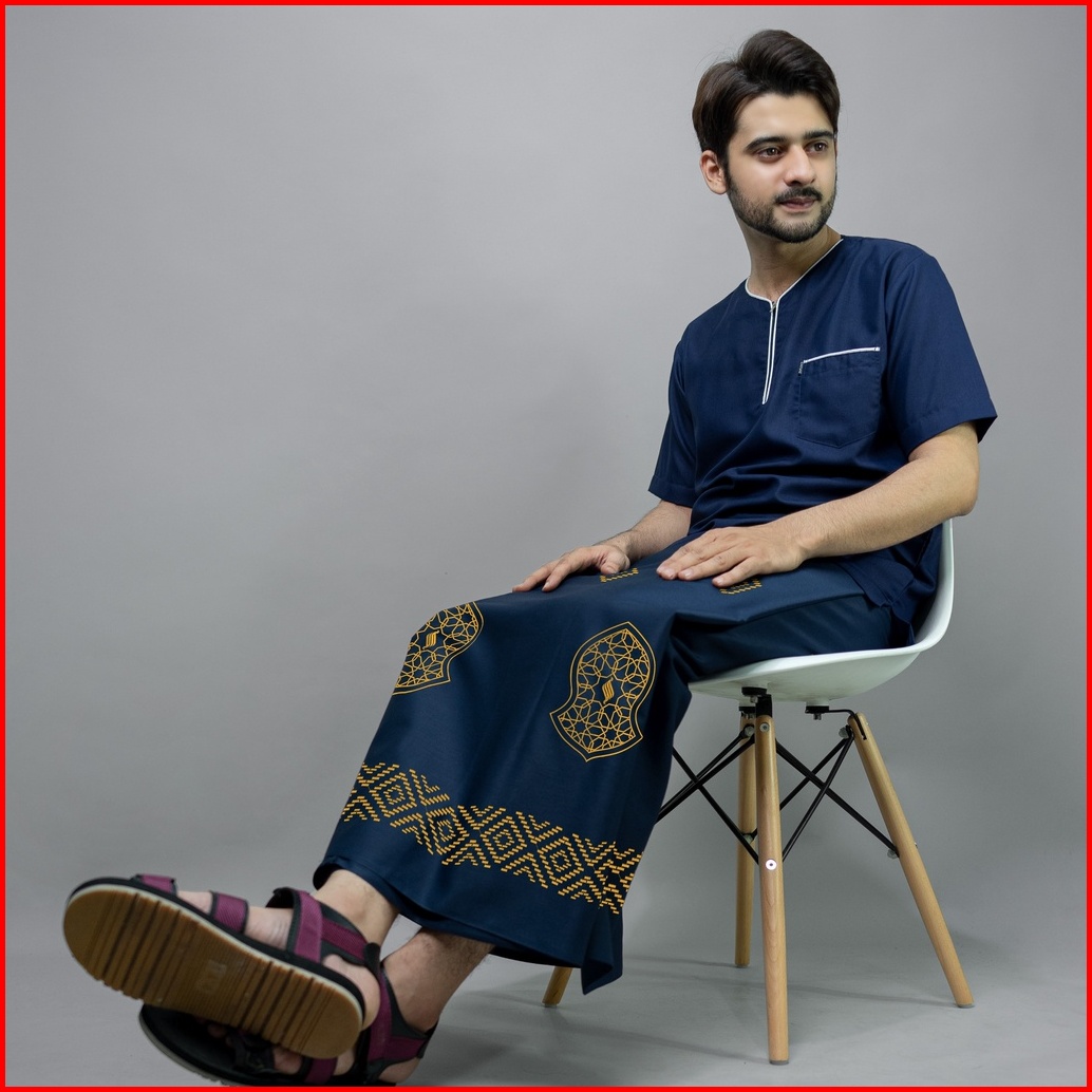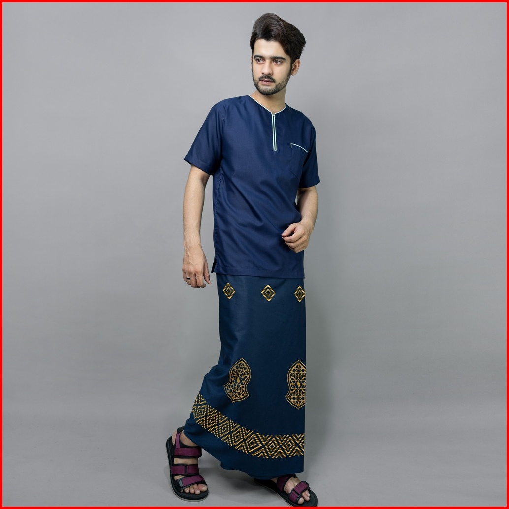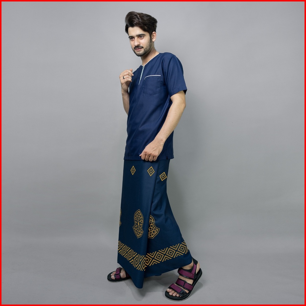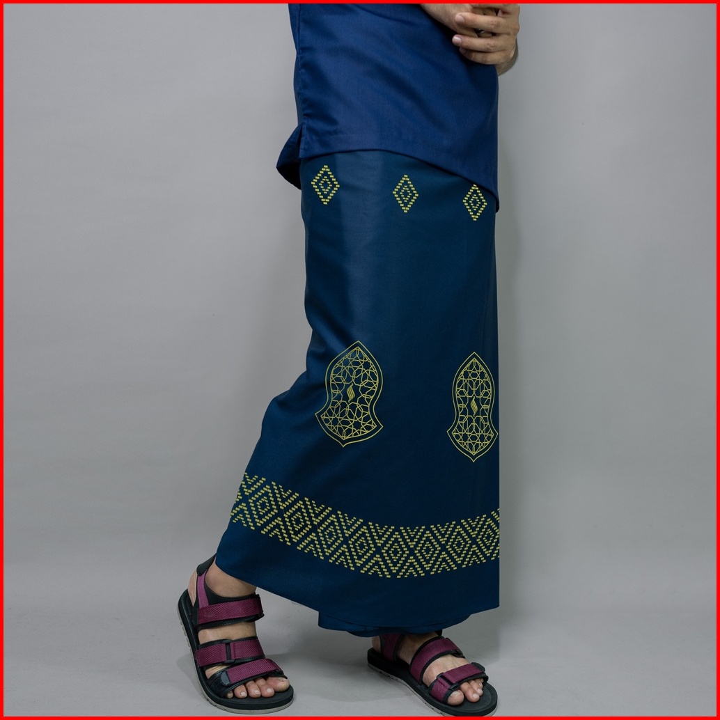 Katsae - Sarung Bordir Motif Terompah Bordir Timbul Sarung Pria Dewasa Warna Navy Sarung Sholat 100 Bordir