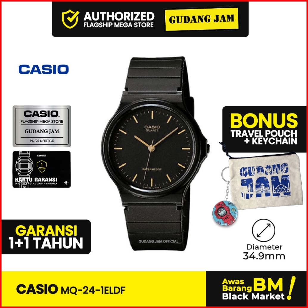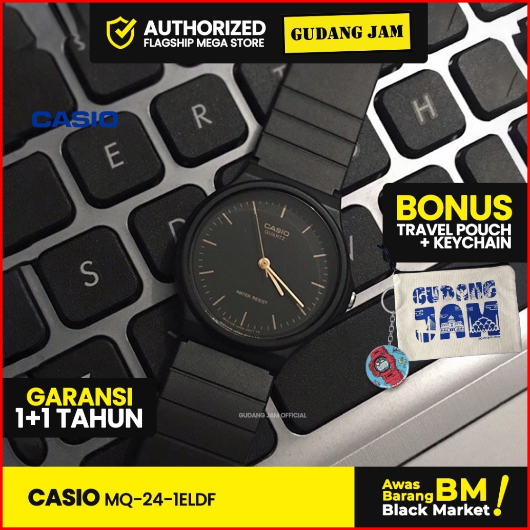 Jam Tangan Unisex Casio Original Mq-24-1eldf Black Resin Band