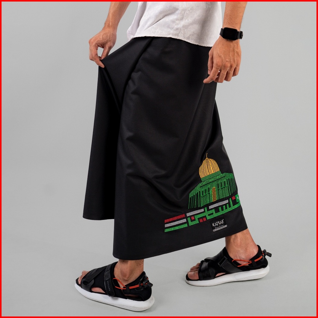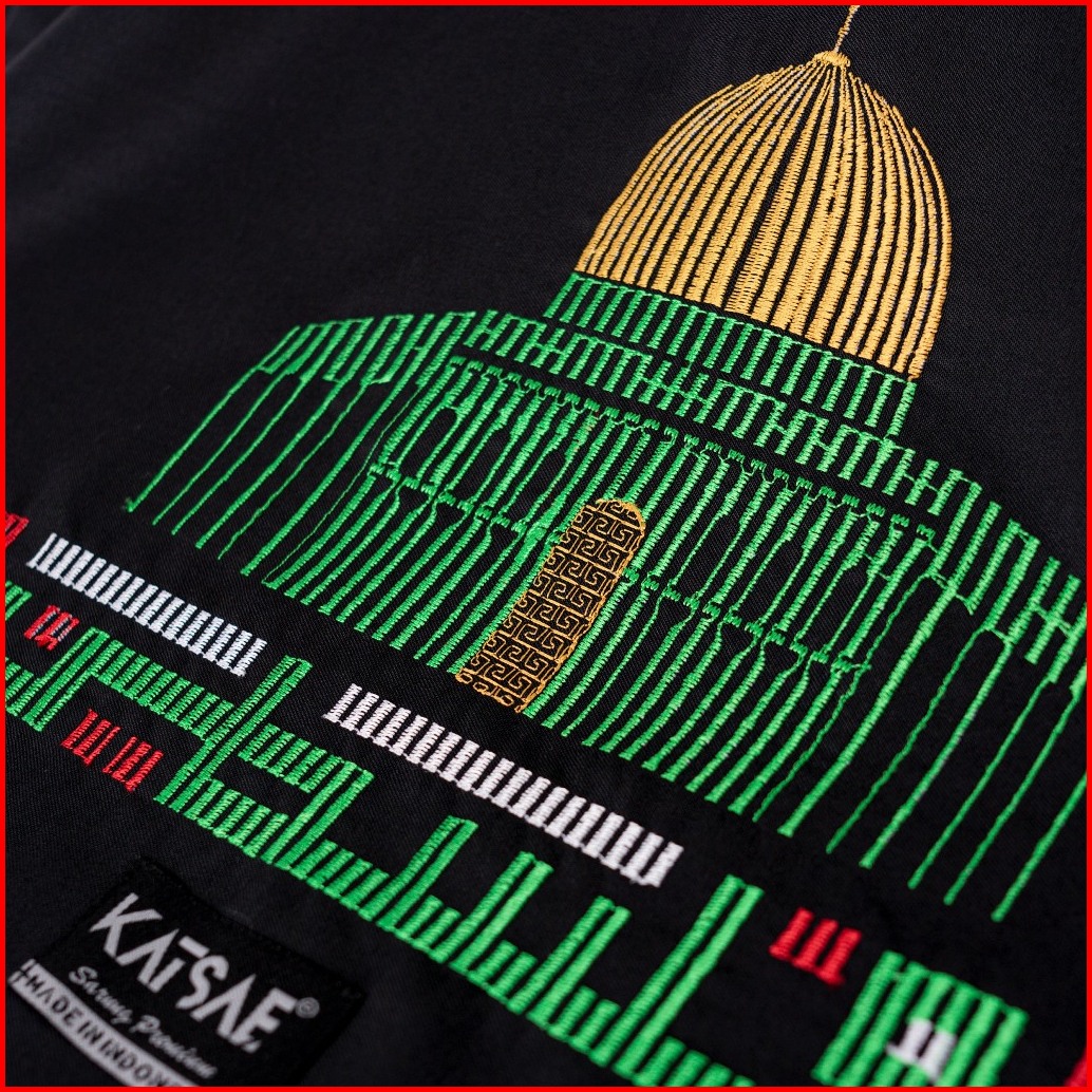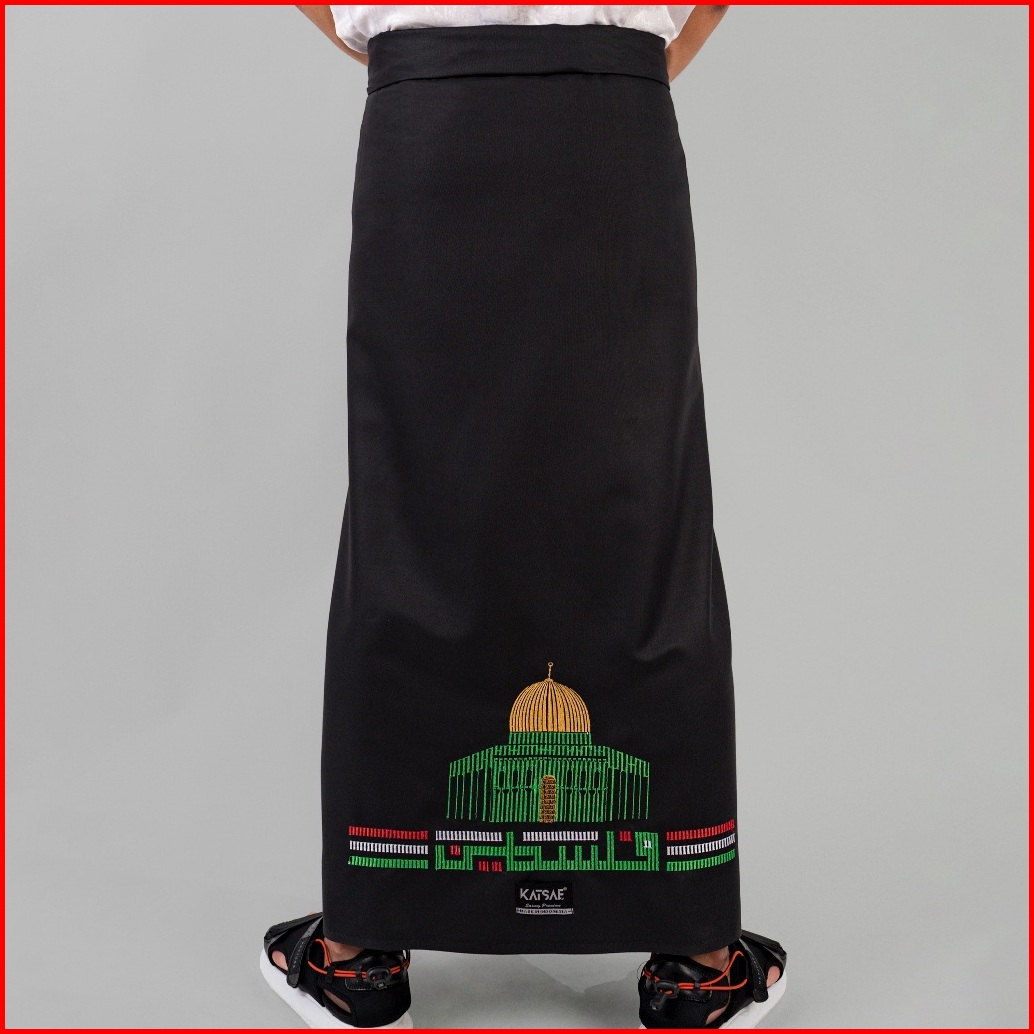 Katsae - Sarung Bordir Motif Al-quds Palestina 100 Timbul Sarung Pria Dewasa Sarung Sholat Hitam