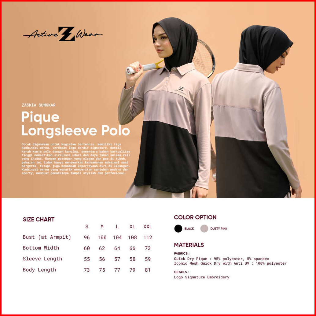 Pique Longsleeve Polo Dusty Pink Active Zs L Atasan Olahraga Wanita