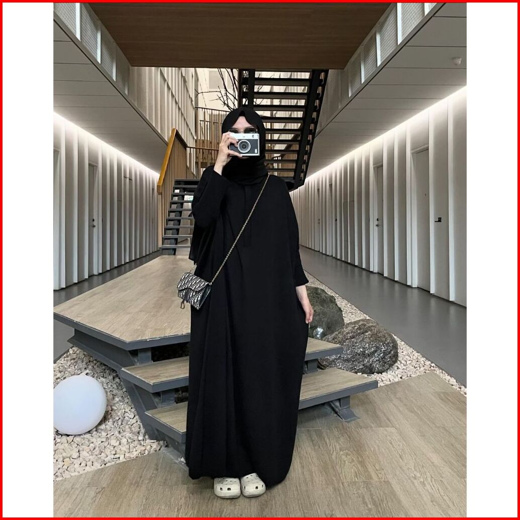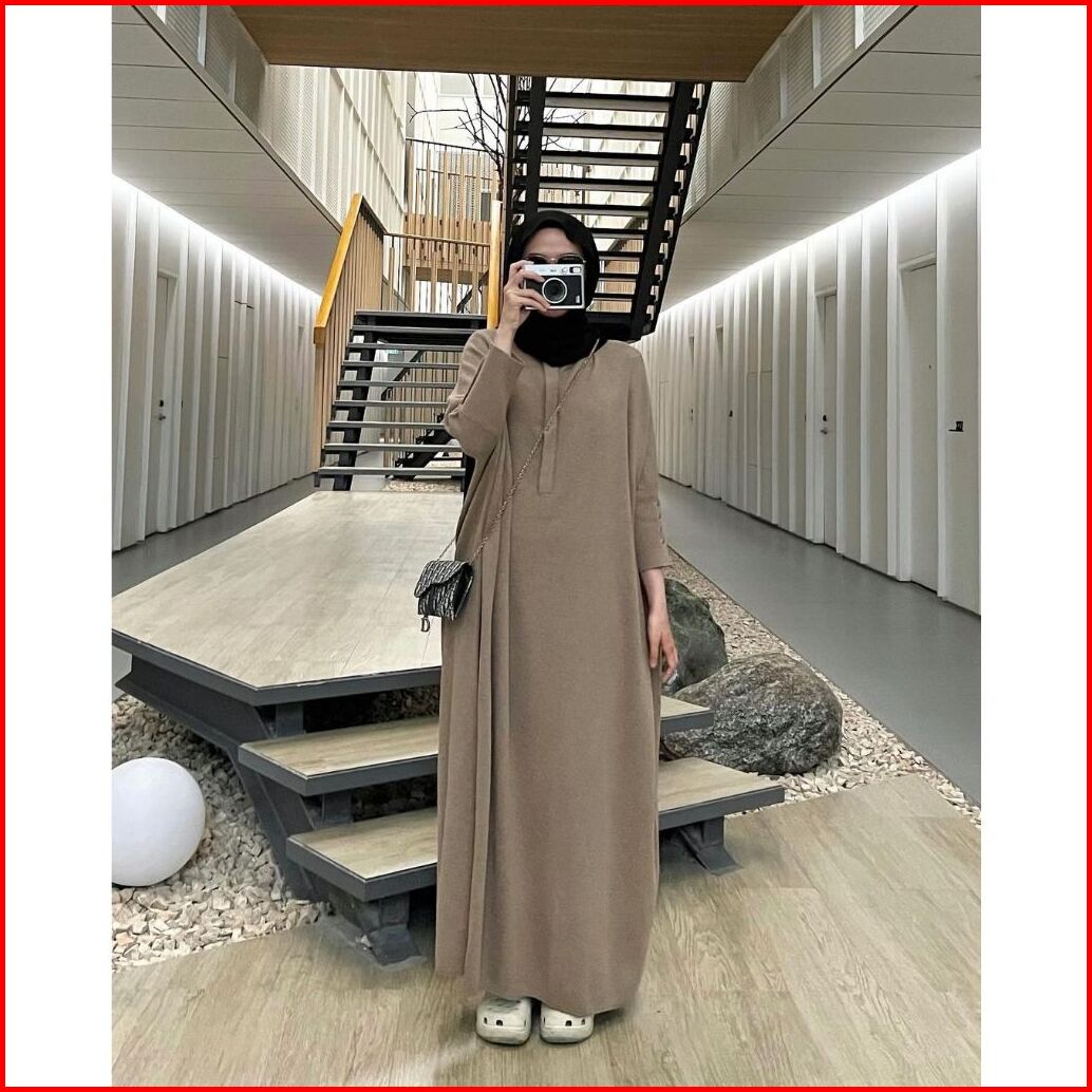 Batwing Plisket Knit Dress Gamis Polos Basic Premium Daily Terbaru Bahan Knit Full Katun 2404 V2