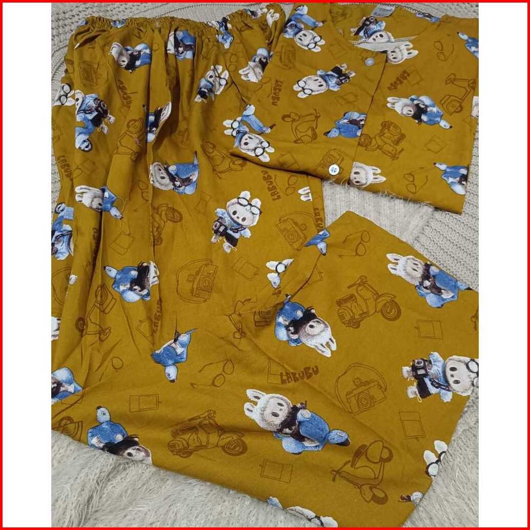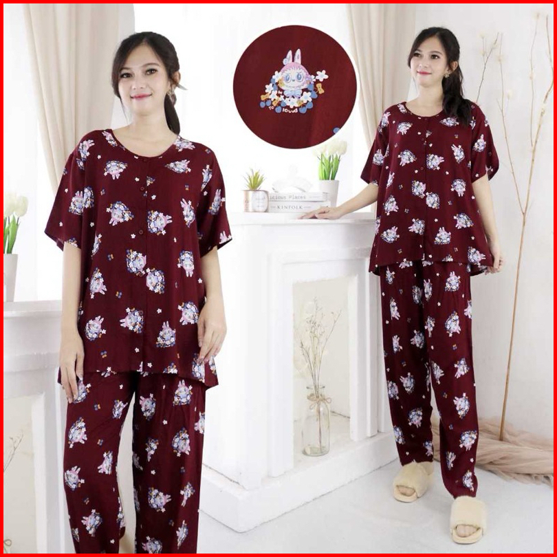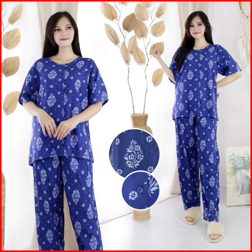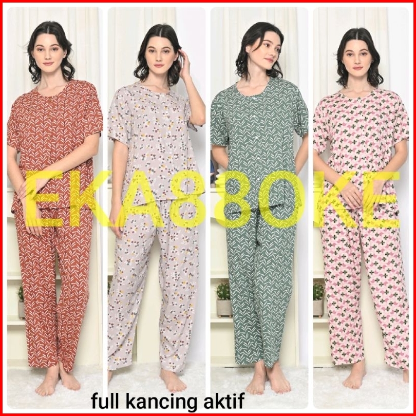 Piyama Rayon Full Kancing Aktif Bunga-bunga Adem
