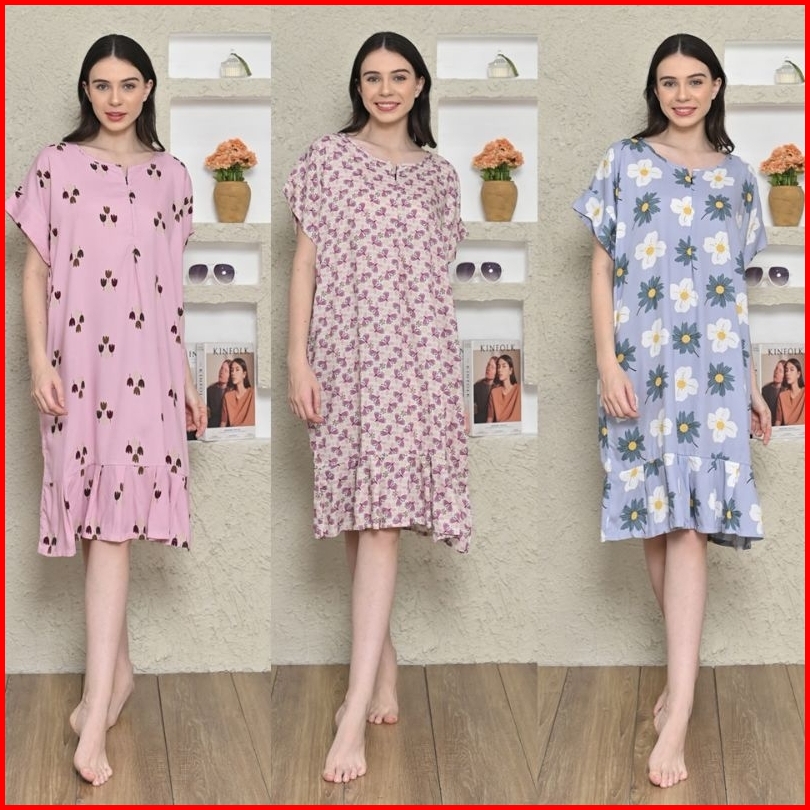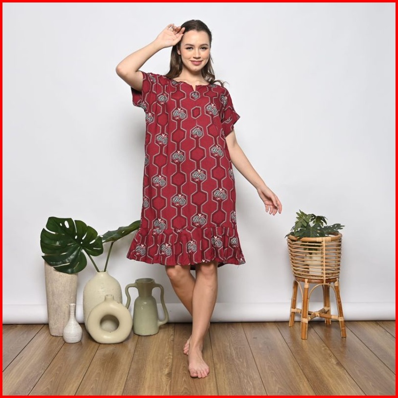 Pajamadreams Daster Dress Remple Ruffle Pendek Selutut Busui Bahan Rayon Premium Adem Baju Santai Perempuan Bisa Untuk I