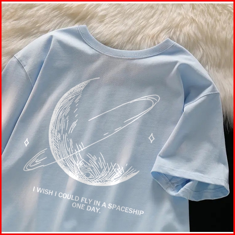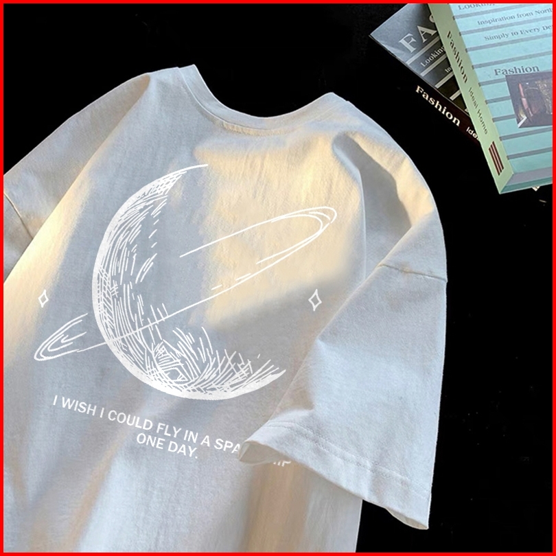 Forteid T-shirt Short Sleeve Baju Kaos Oversize Baju Sullivan T-shirt Atasan Wanita Terbaru Cetak Bulan Cotton Tops T-sh