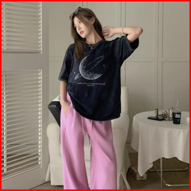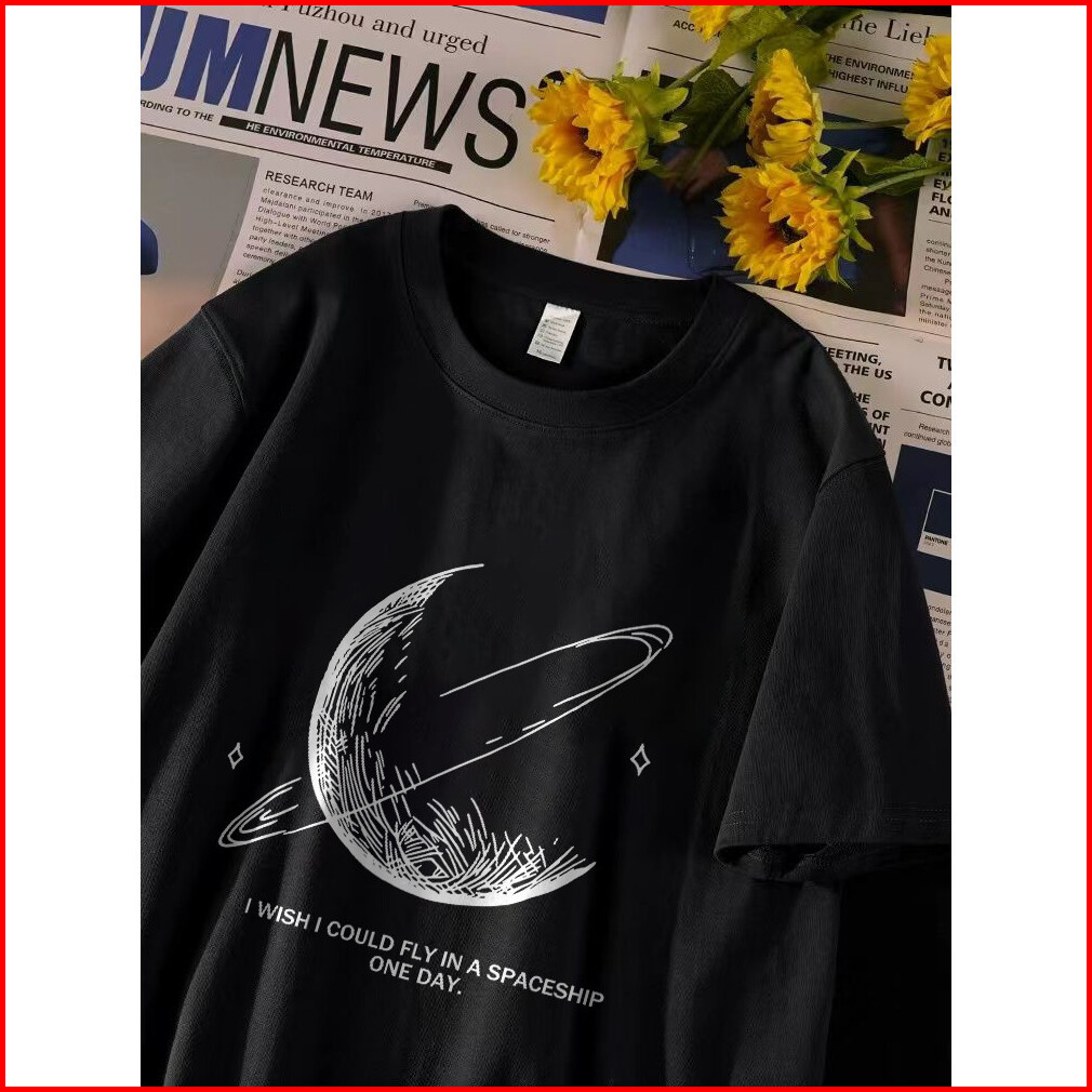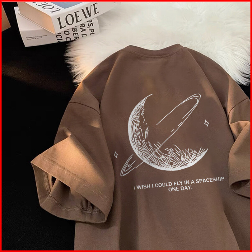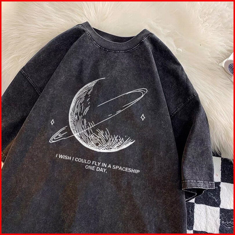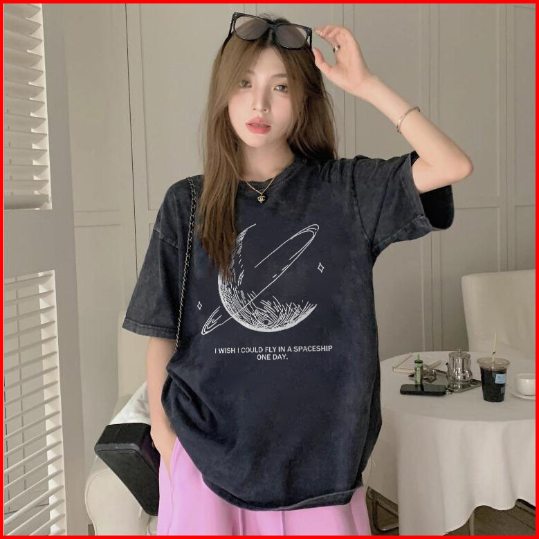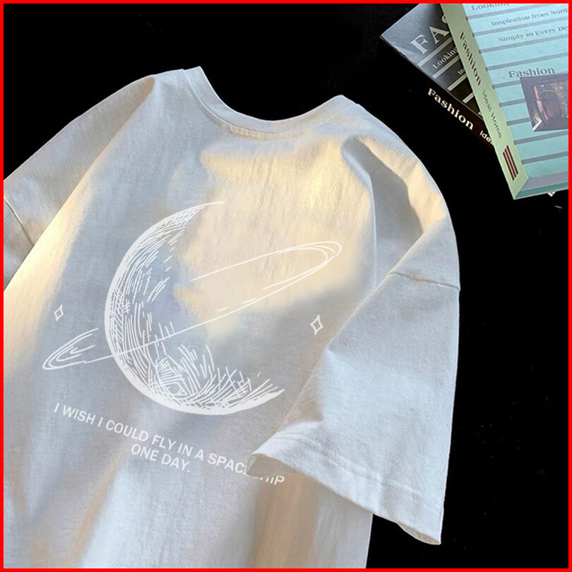 Forteid T-shirt Short Sleeve Baju Kaos Oversize Baju Korean Women S T-shirt Atasan Wanita Terbaru Cetak Bulan Cotton Top