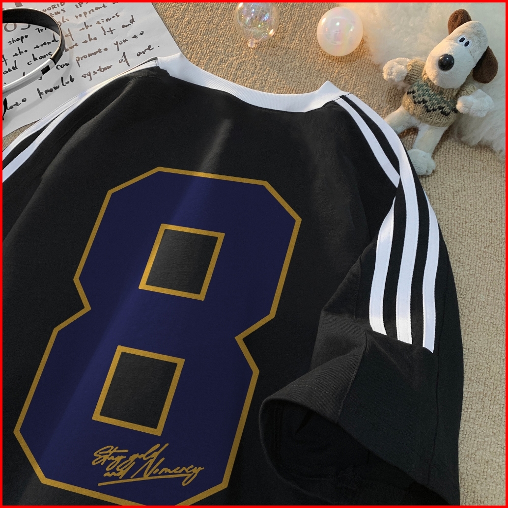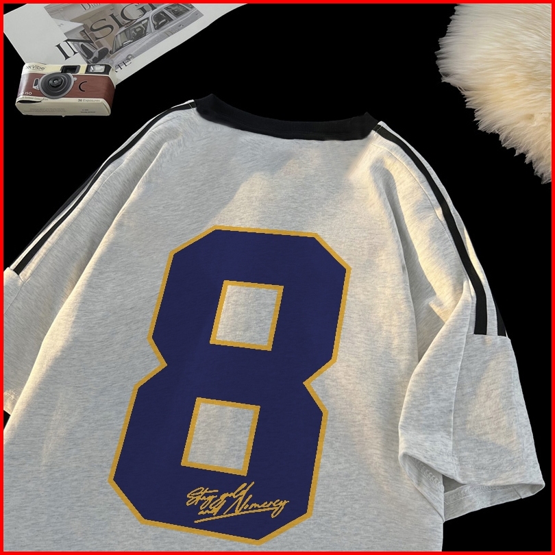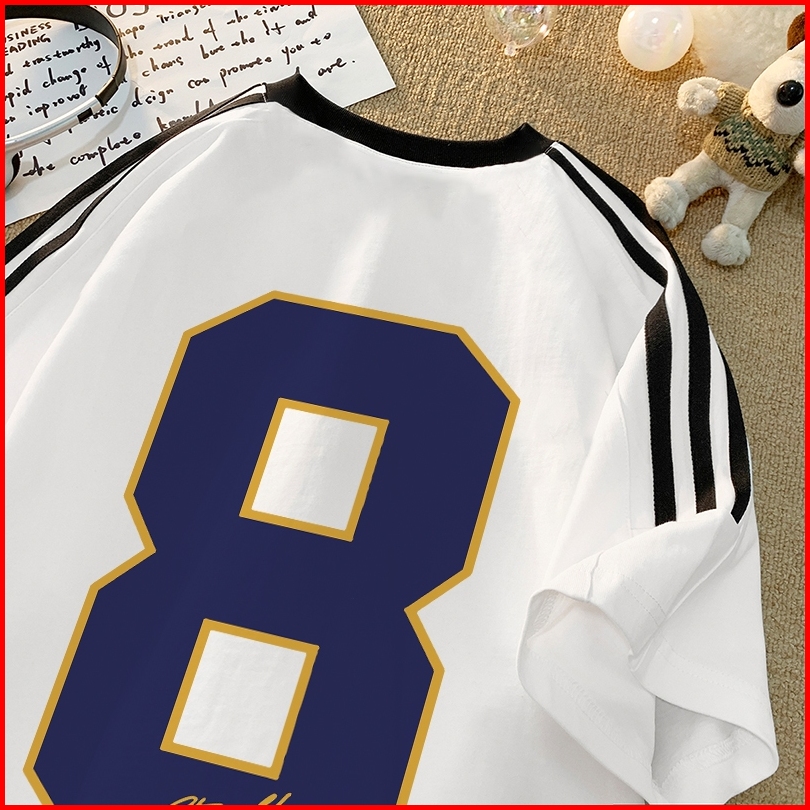 Forteid Cetakan Nomor 8 Baju Club Musim Panaspakaian Wanita Yang Modis Baju Oversize Bergaris Bahu Korean Style Kaos Lon