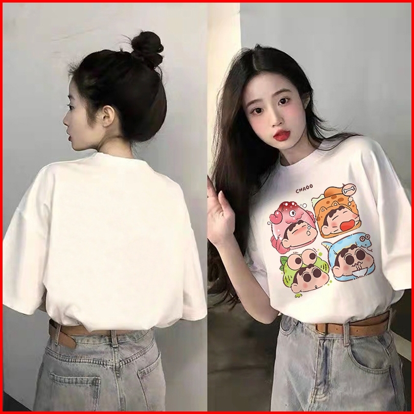 Forteid T-shirt Lengan Pendek Baju Kaos Oversize Wanita Baju Kaus Wanita Korea Baju Atasan Wanita Terbaru Cetakan Crayon