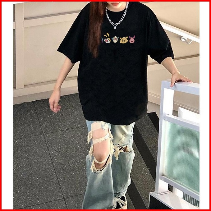 Forteid T-shirt Washed Oversize Tigger And His Good Friend Baju Kaos Oversize Wanita Kaos Korean Style