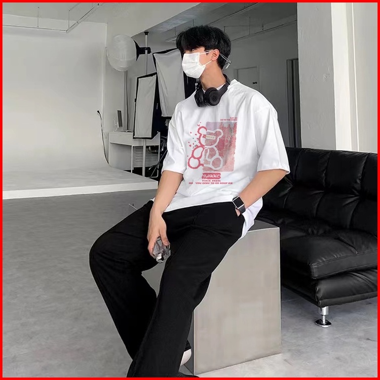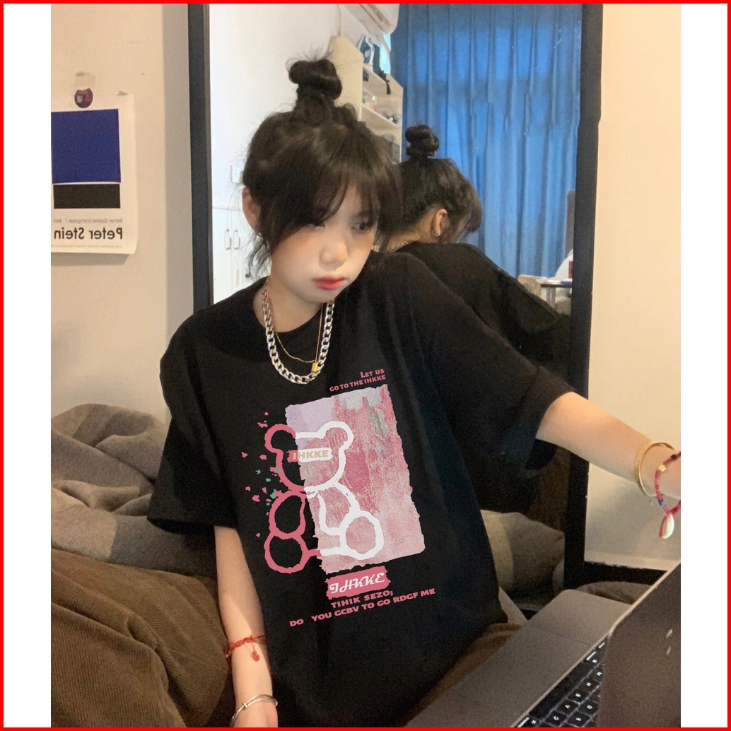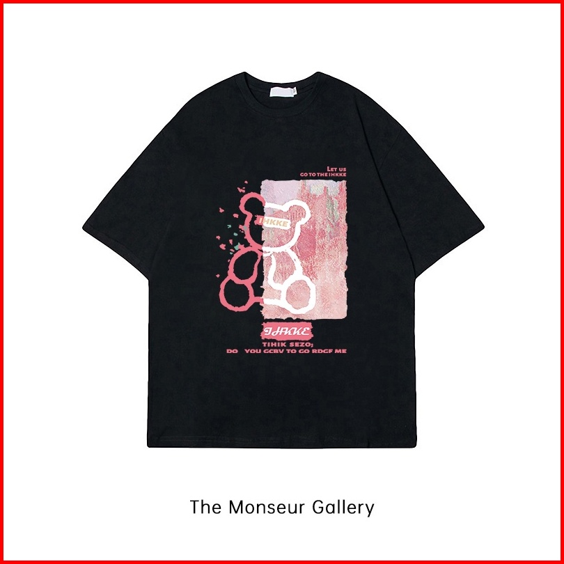 The Monseur Gallery T-shirt Oversize Pink Bear Kaos Hitam A0155
