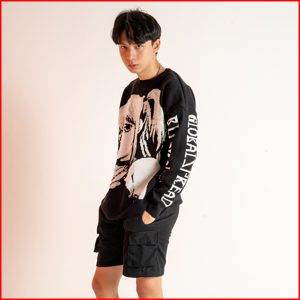 Yesyou Aiko Black Oversized Cotton Knitwear
