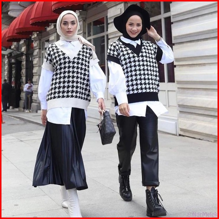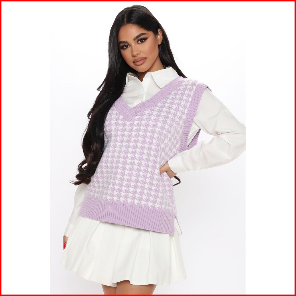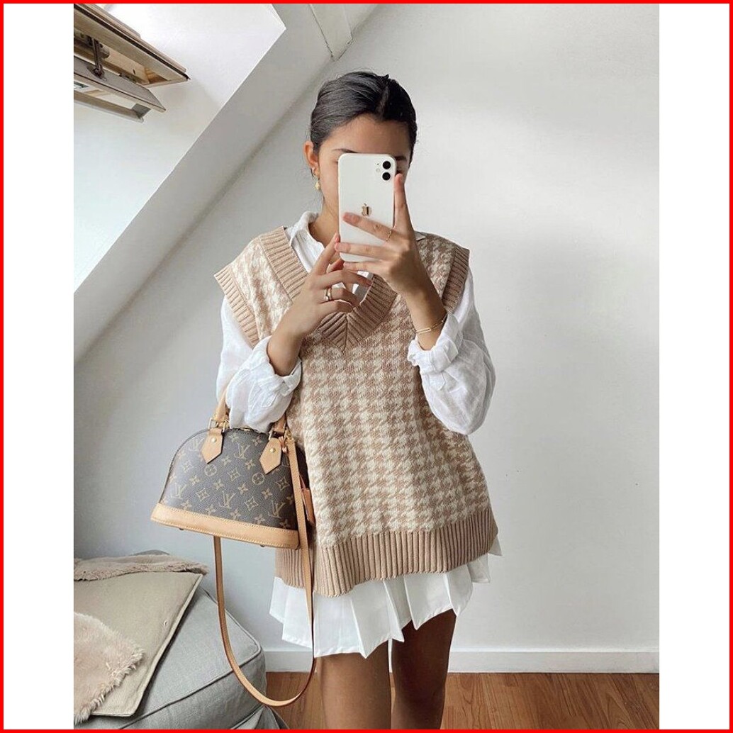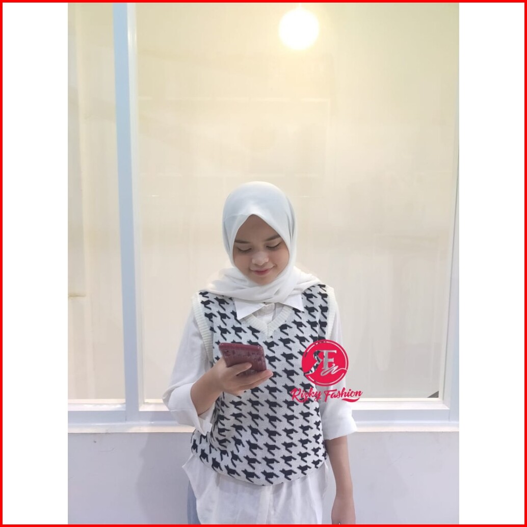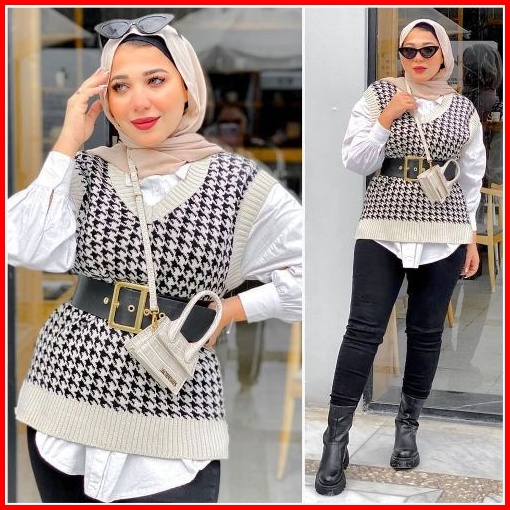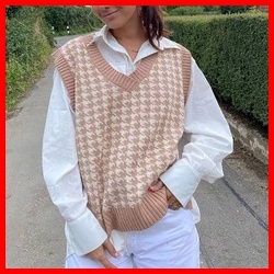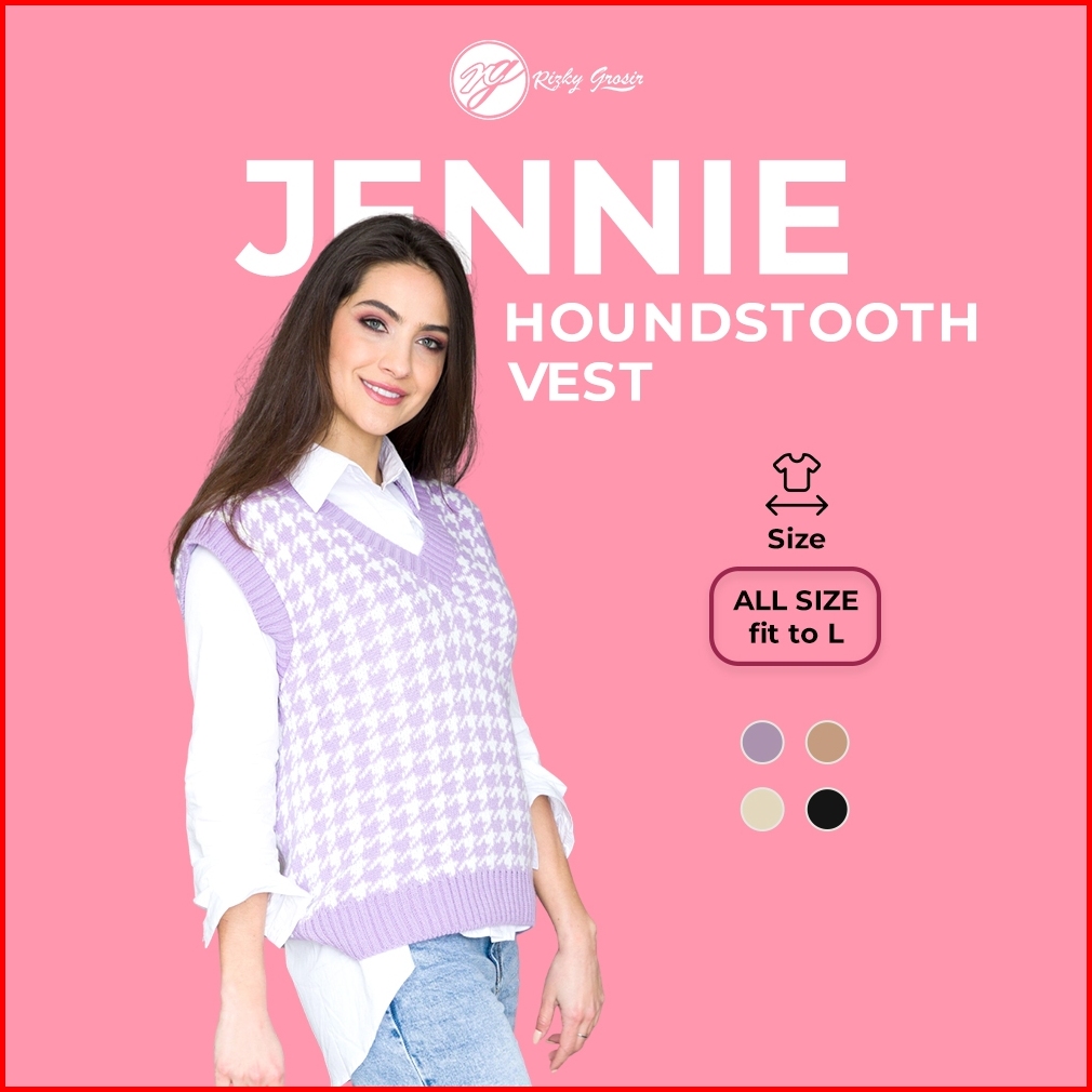 Jennie Bp Vest Houndstooth Vest Street Vintage Rompi Rajut
