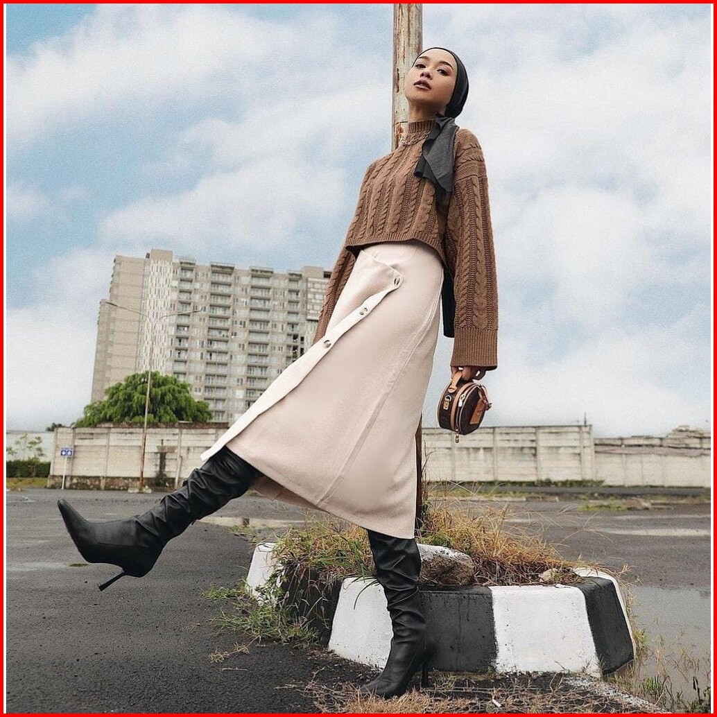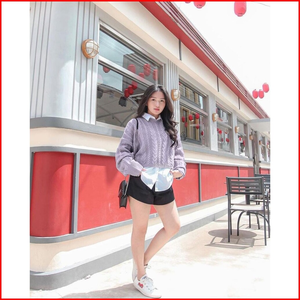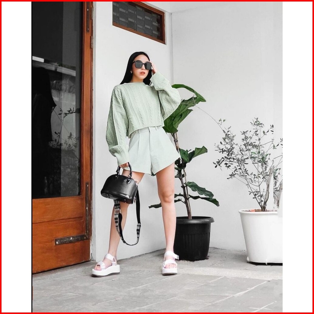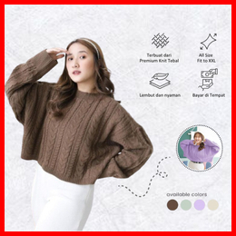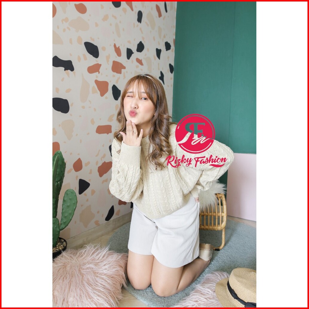 Sweater Crop Rajut Korean Style Atasan Wanita Knit Premium Tebal Polos - Najahstore Crop Cable