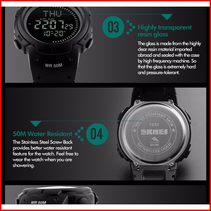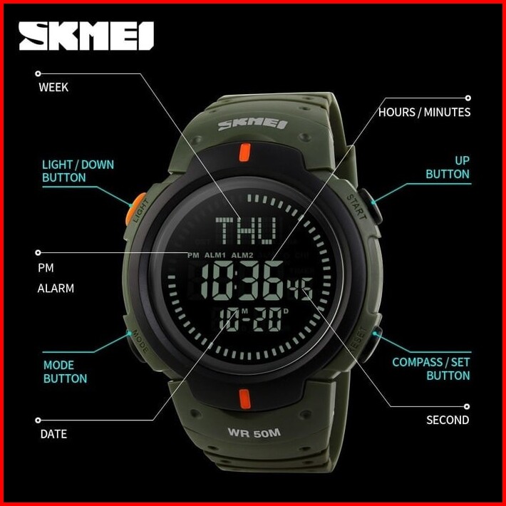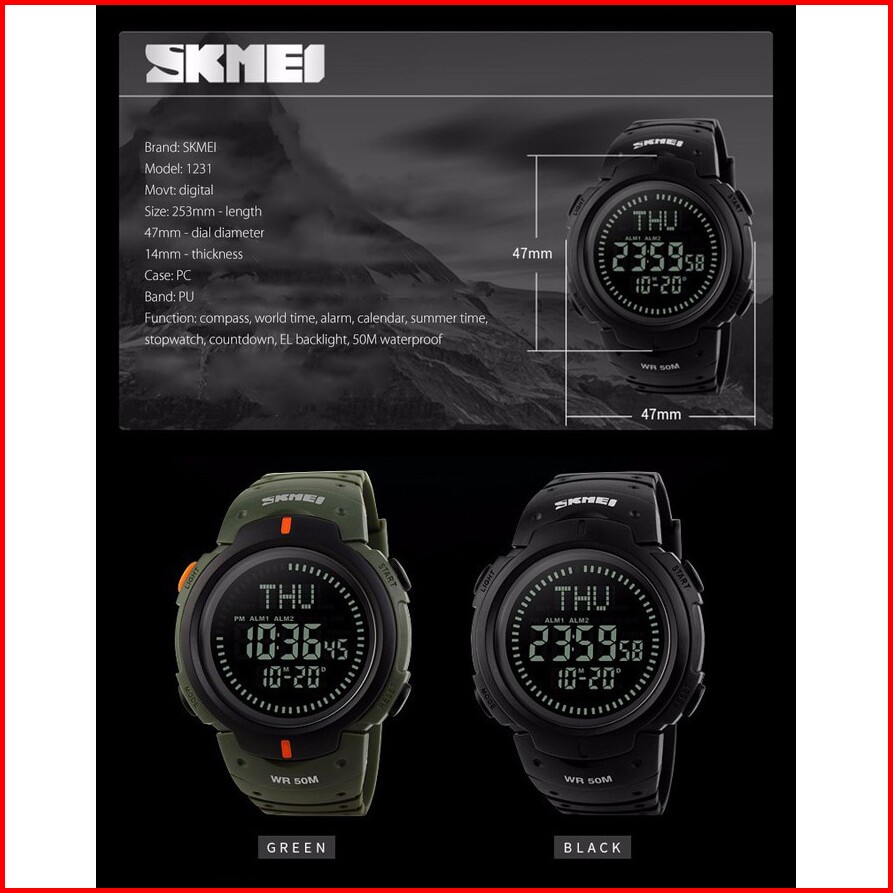 Jam Tangan Pria Digital Skmei 1231 Armygreen Water Resistant 50m