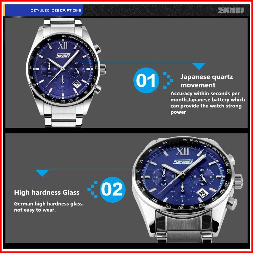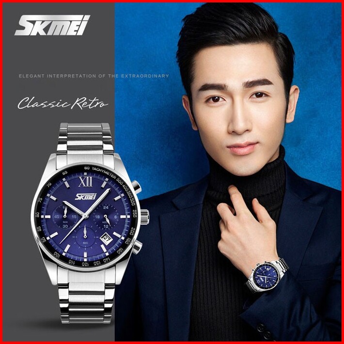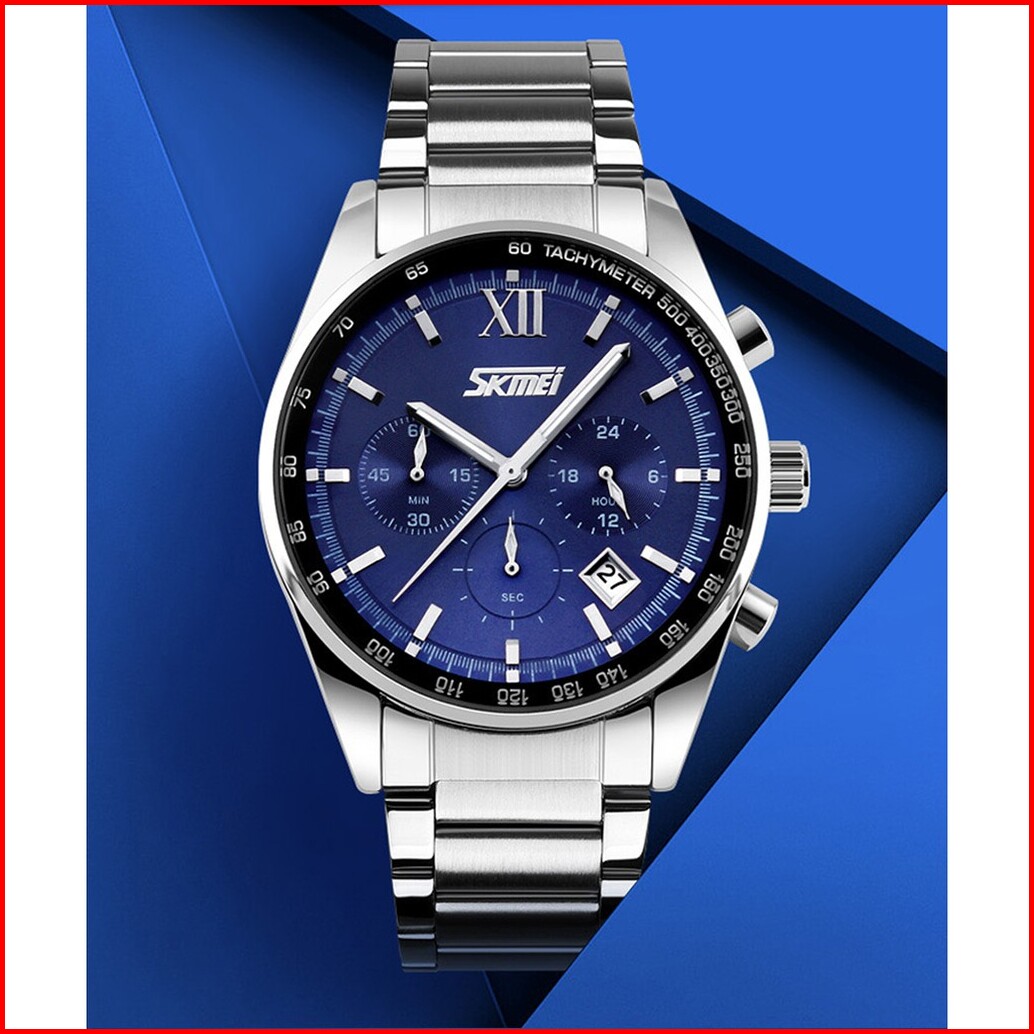 Jam Tangan Pria Analog Skmei 9096 Blue Water Resistant 30m