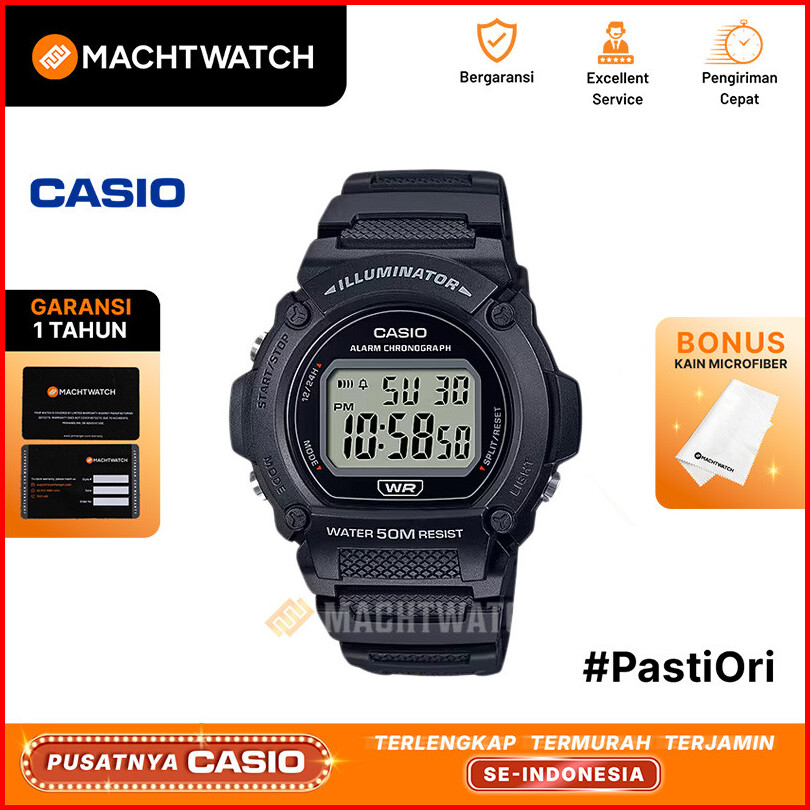 Jam Tangan Pria Digital Casio Standard W-219h-1avdf W219 W-219h Dial Black Resin Band