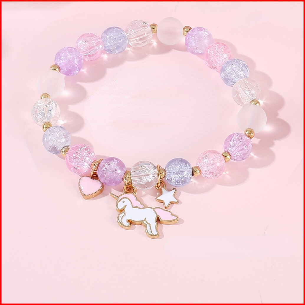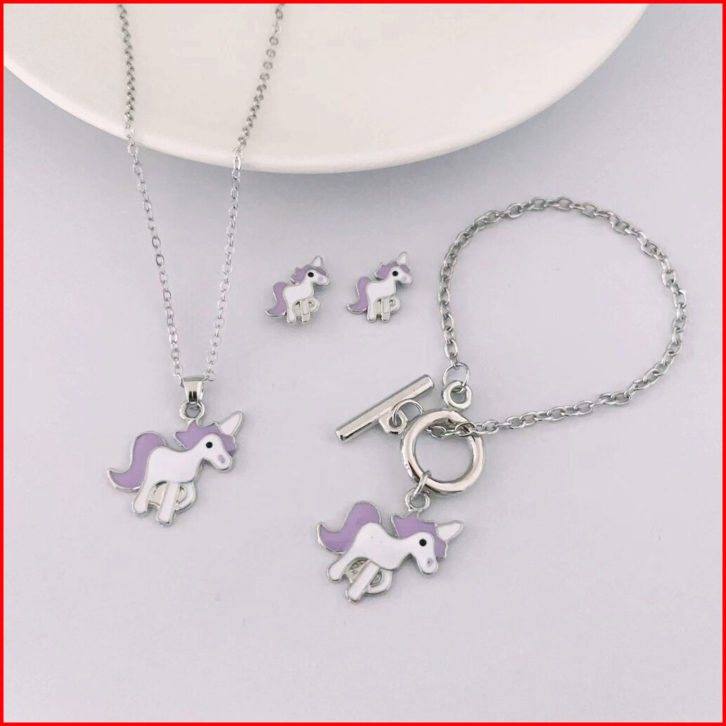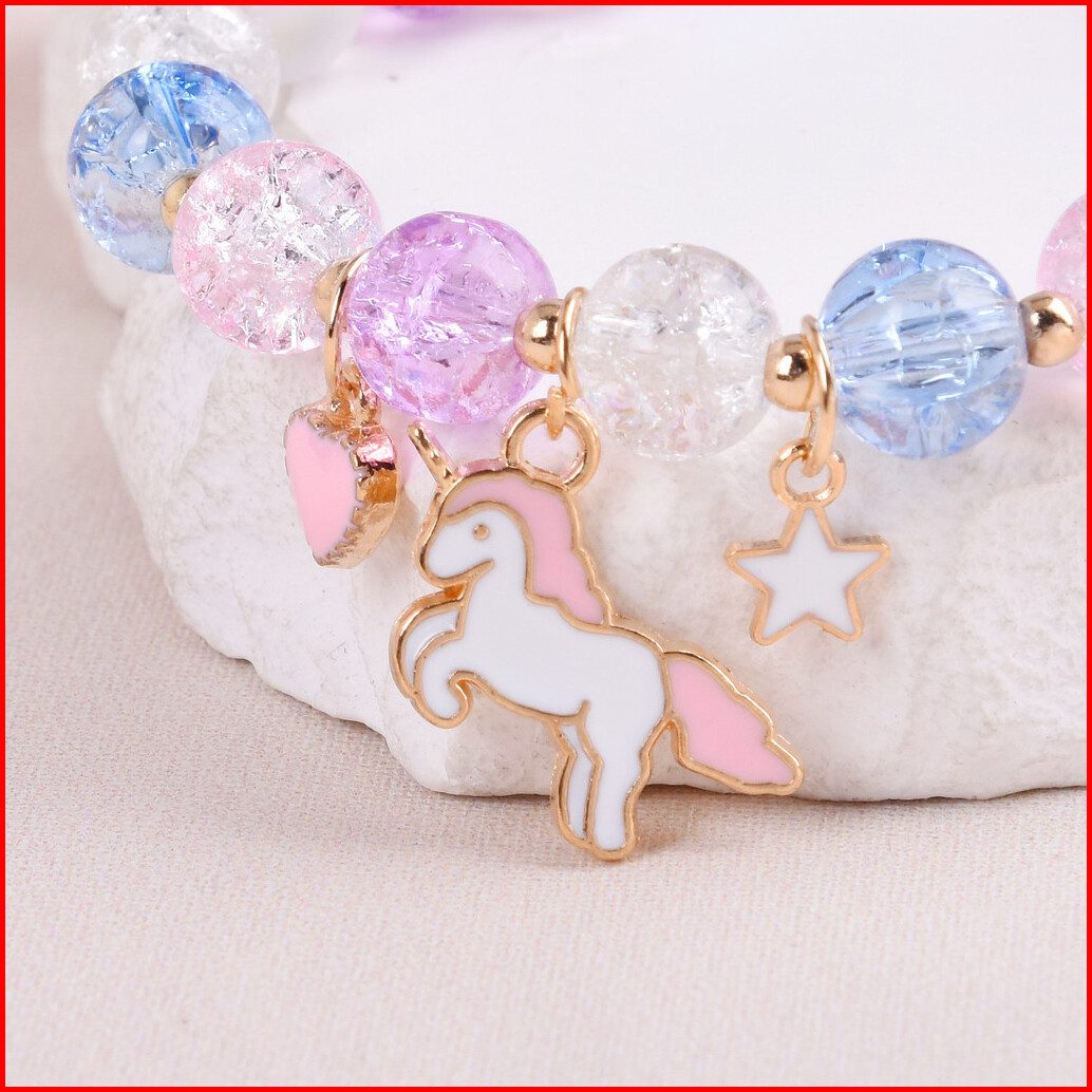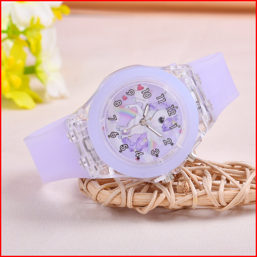 6pcs Jam Tangan Kuarsa Anak-anak Lucu Tali Silikon Dial Unicorn Jam Tangan Set Aksesori Dompet Bulat Yang Serasi Tanpa K