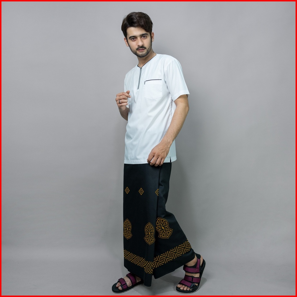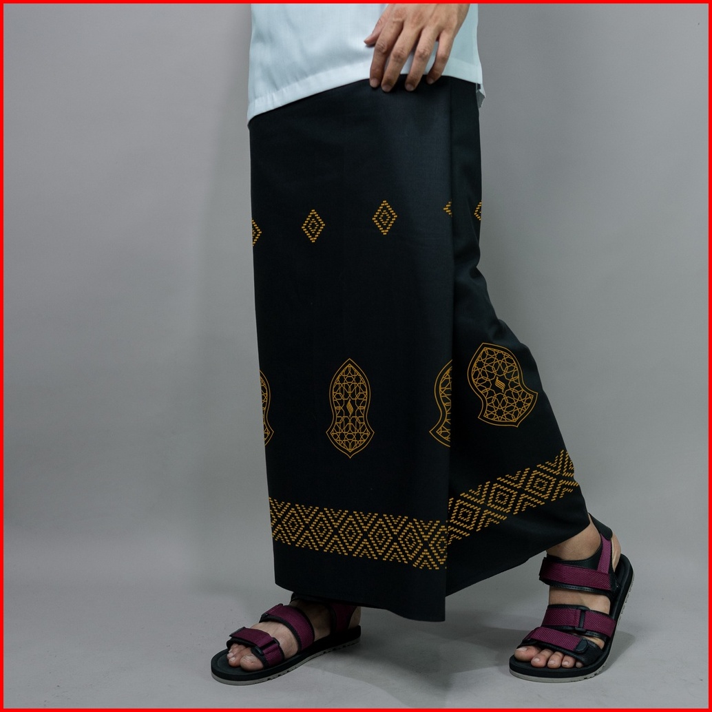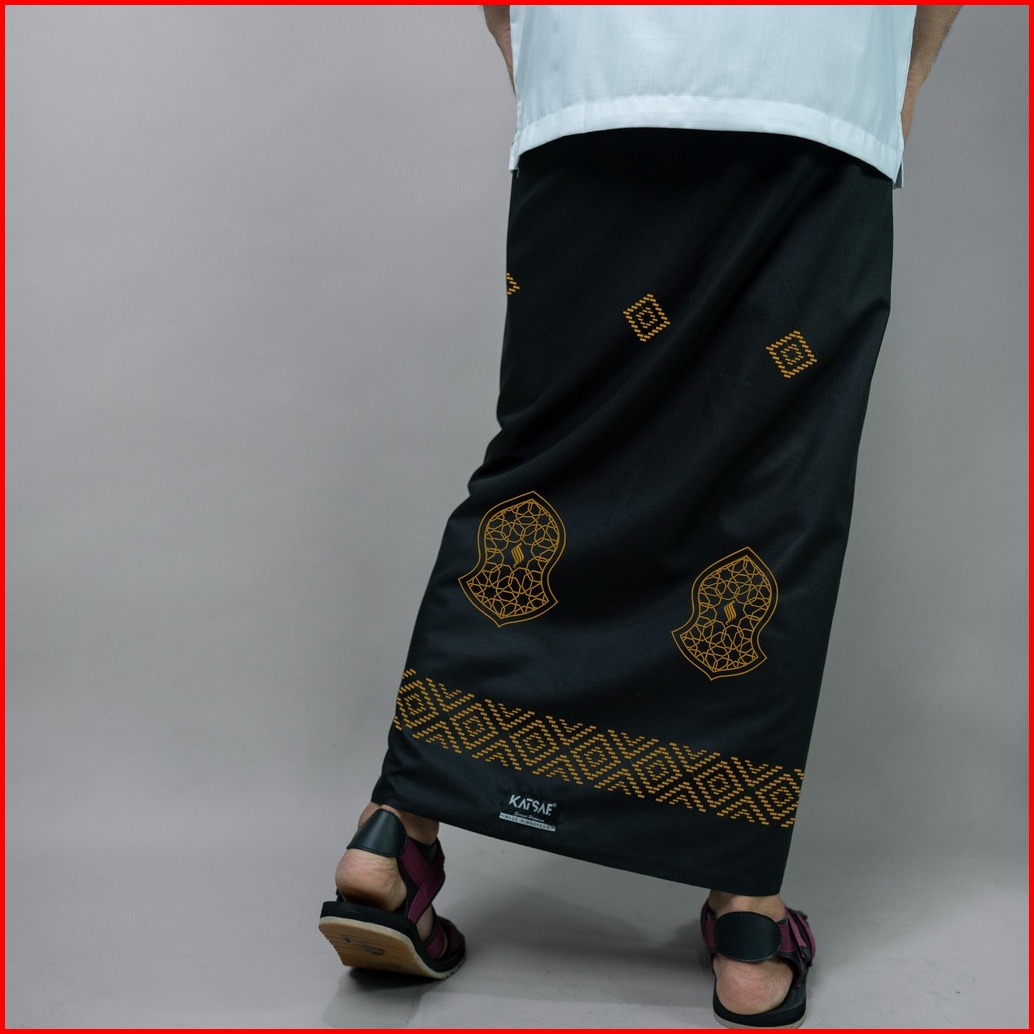 Katsae - Sarung Bordir Motif Terompah Bordir Timbul Sarung Pria Dewasa Warna Hitam Sarung Sholat 100 Bordir