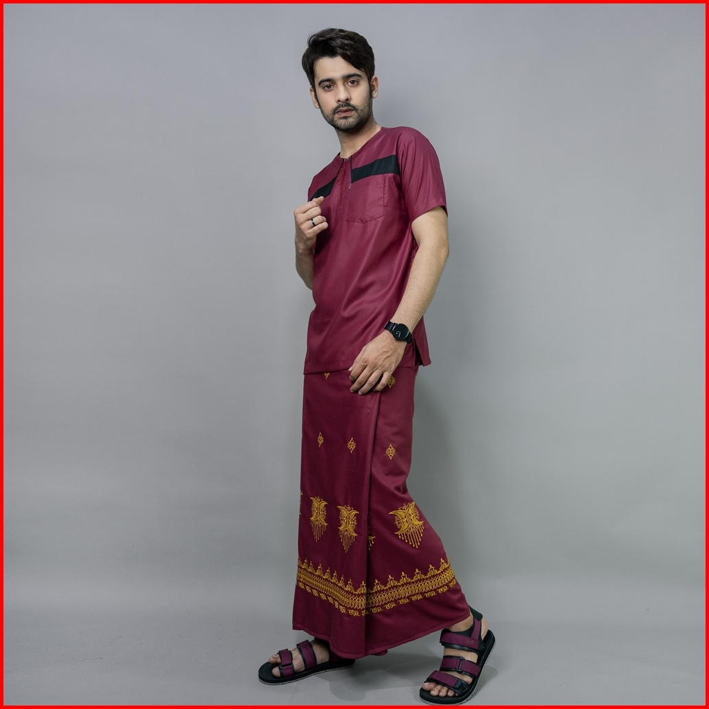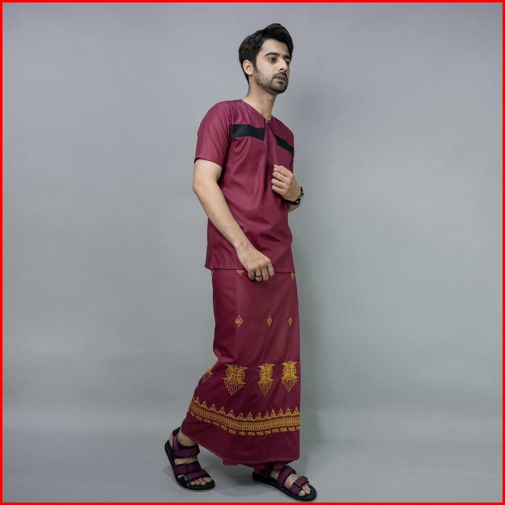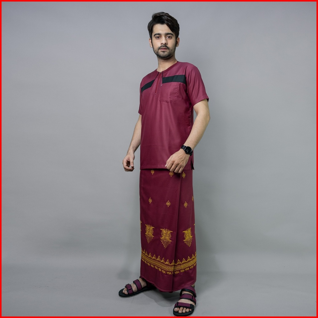Katsae - Sarung Bordir Pintu Aceh Motif Timbul Keren Sarung Pria Dewasa Sarung Sholat 100 Bordir Warna Marun