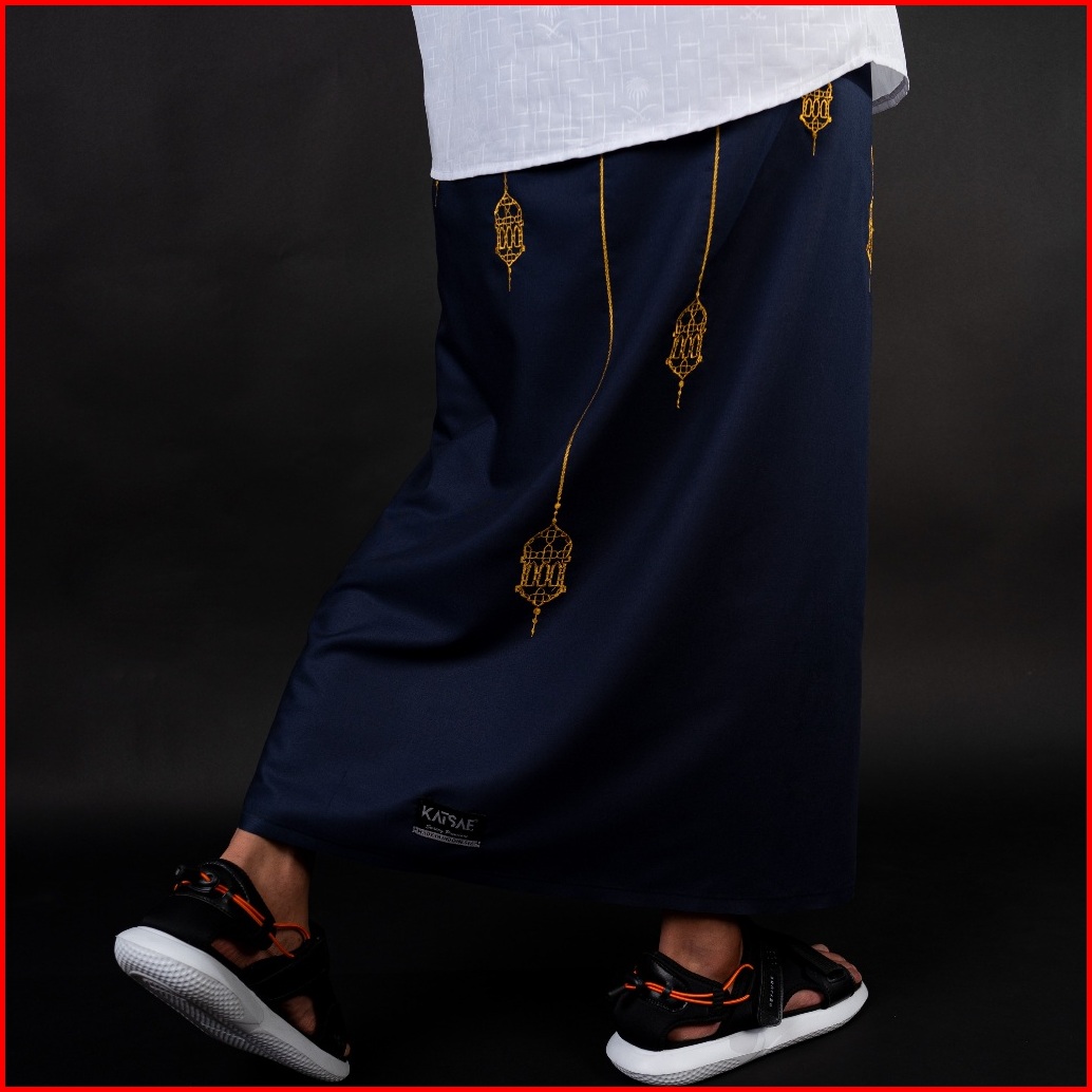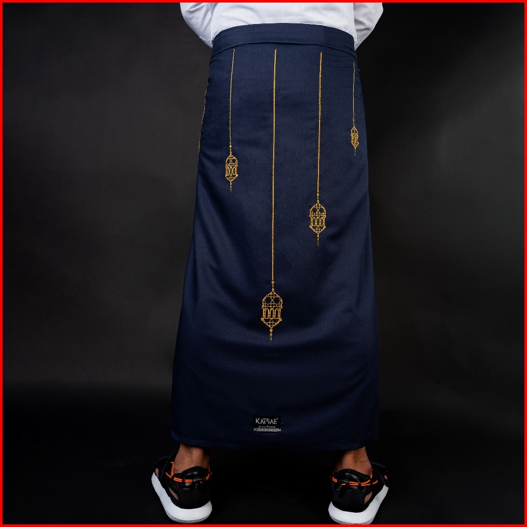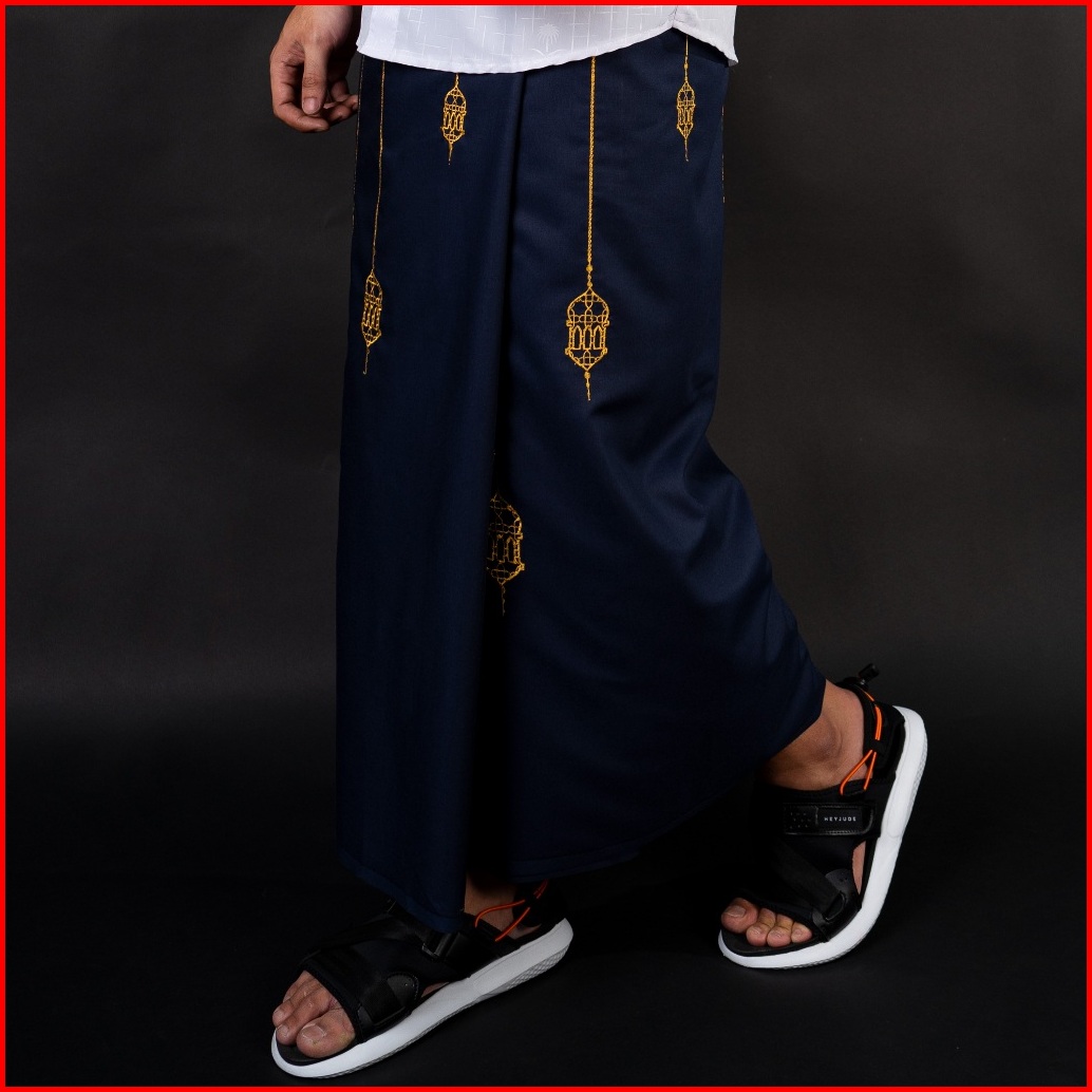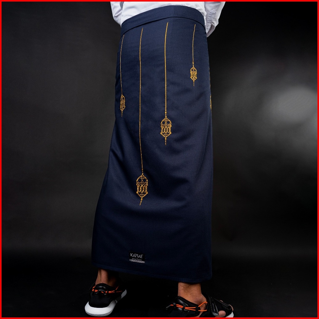 Katsae Sarung Bordir Motif Lentera Embroidery Timbul Sarung Pria Dewasa Sarung Sholat 100 Bordir Asli Warna Navy Putih H