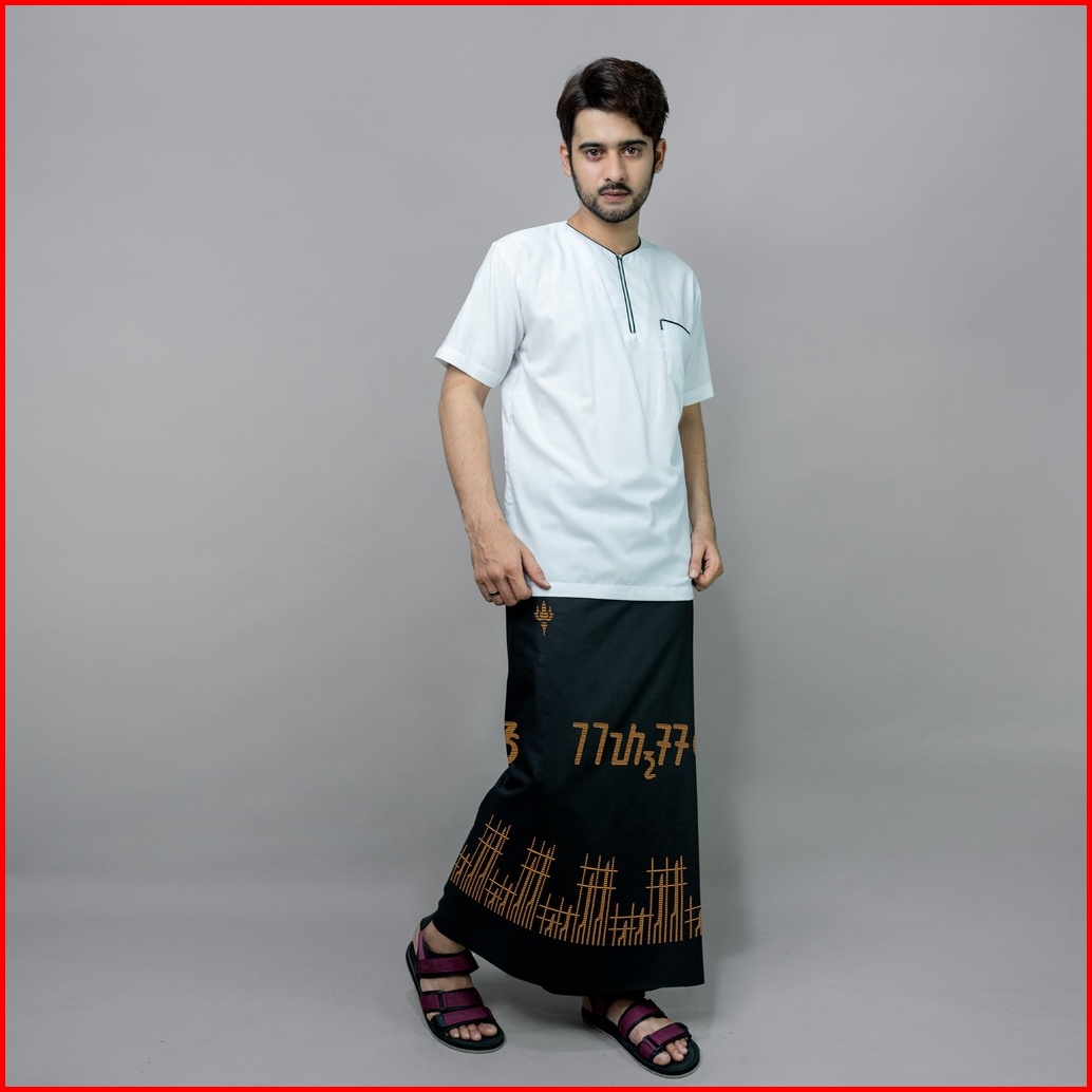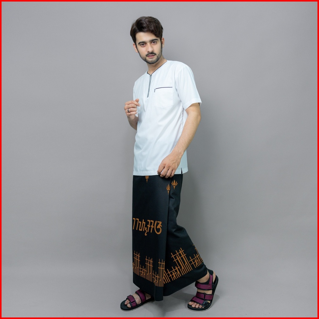 Katsae - Sarung Bordir Motif Angklung Bordir Timbul Sarung Pria Dewasa Warna Black Sarung Sholat 100 Bordir