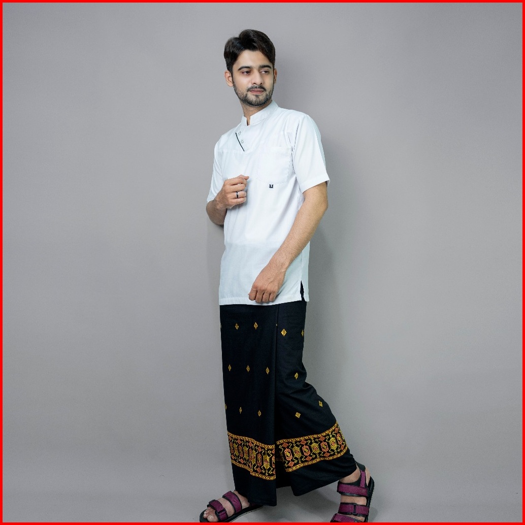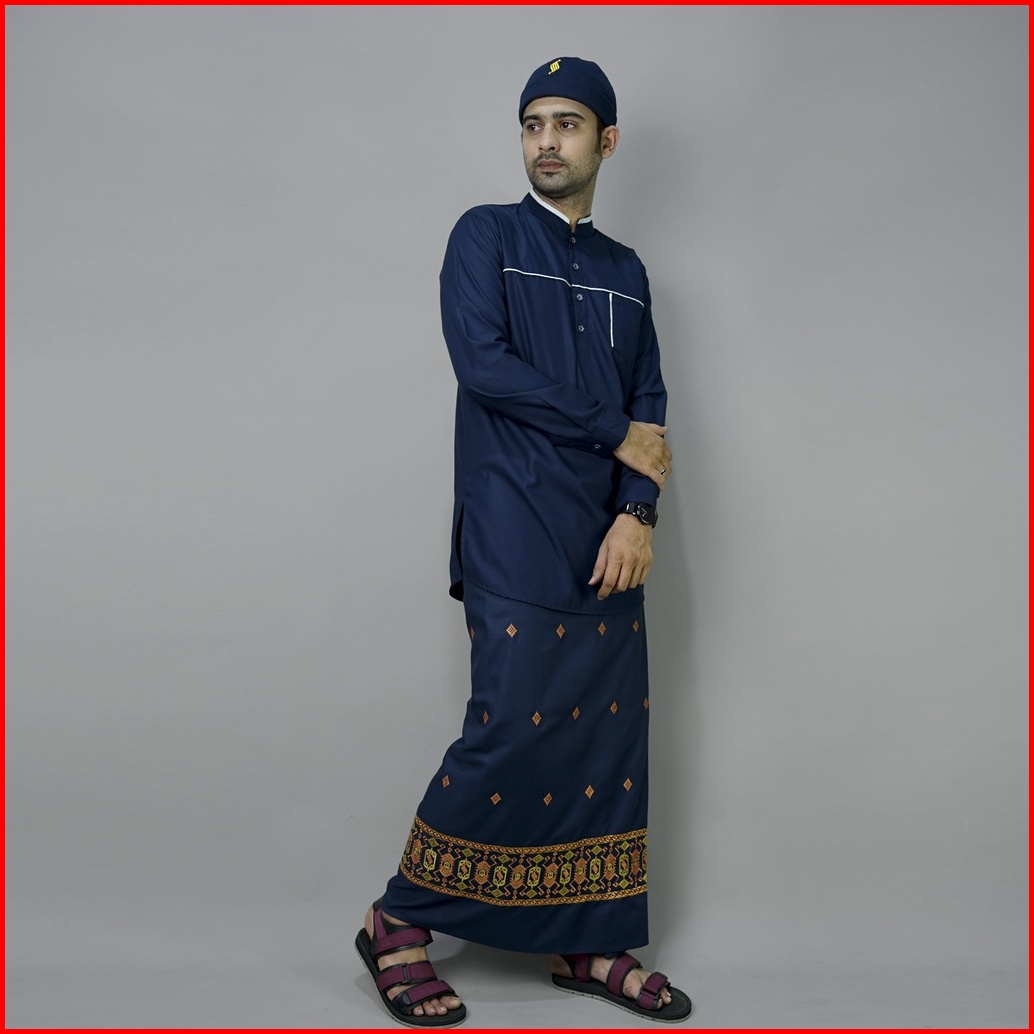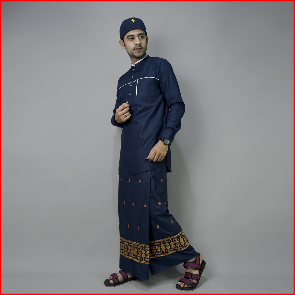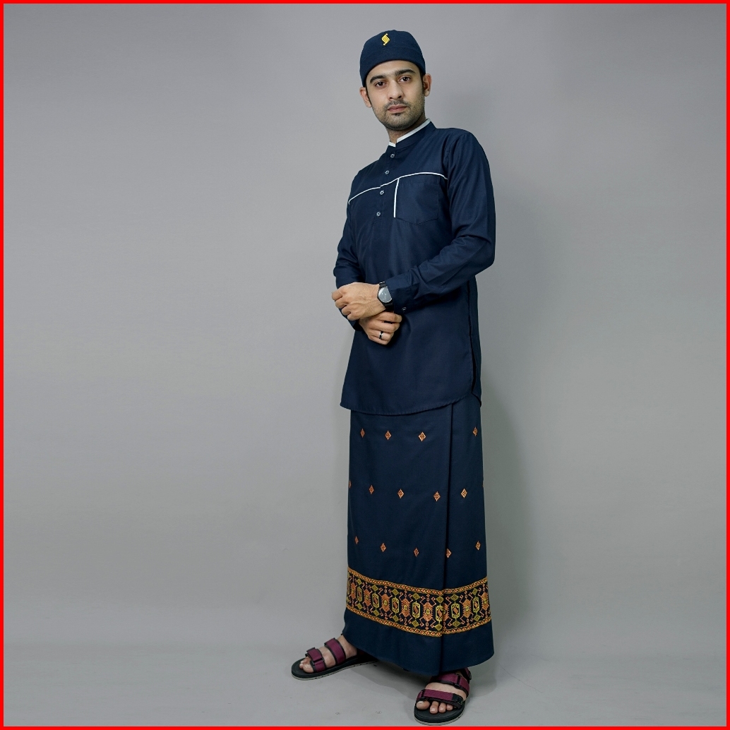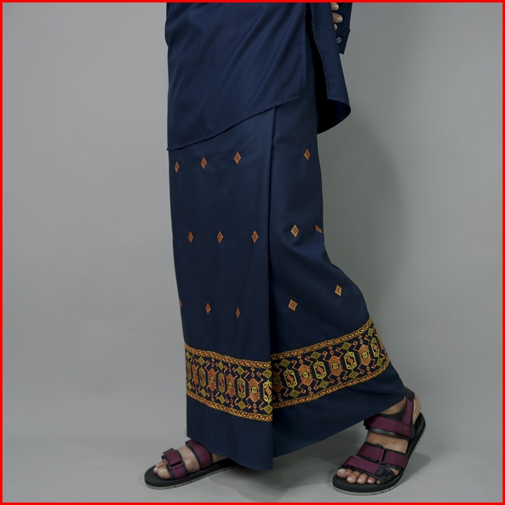 Katsae - Sarung Bordir Motif Bali Bordir Timbul Sarung Pria Dewasa Warna Navy Sarung Sholat 100 Bordir