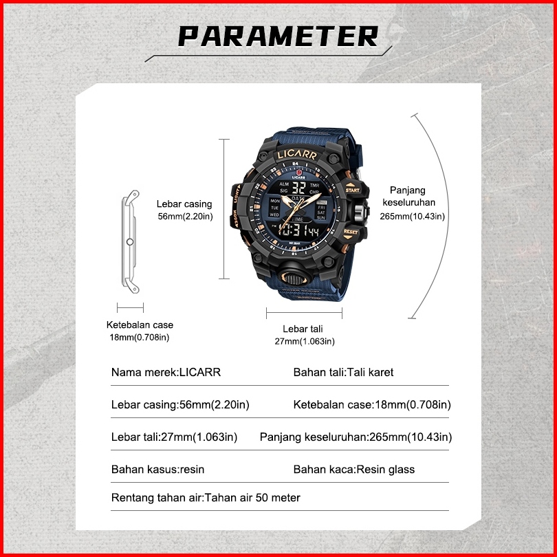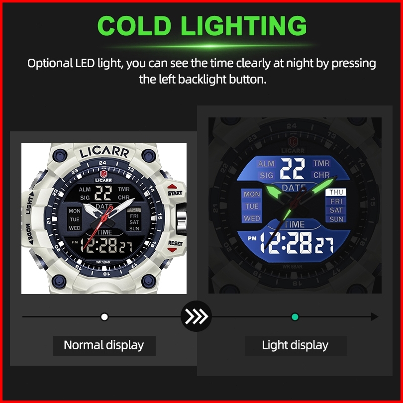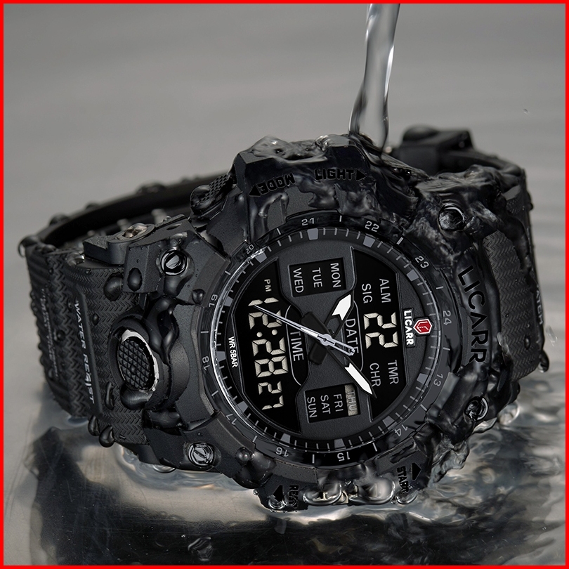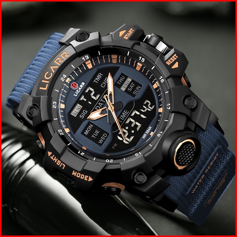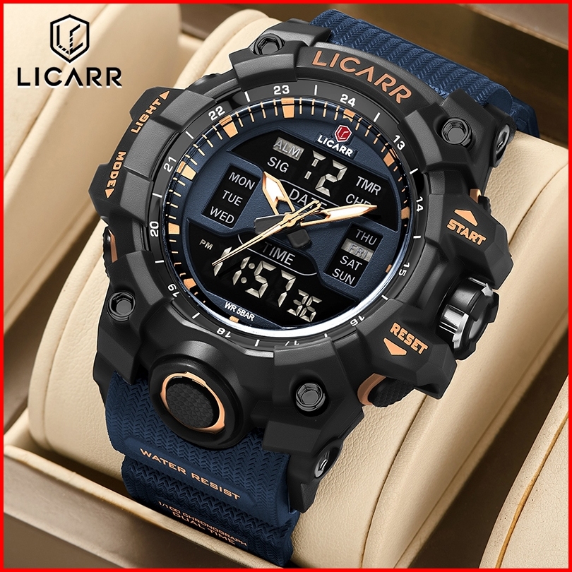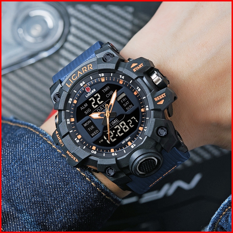 Licarr Jam Tangan Pria Olahraga Analog Digital Santai Kuarsa Anti Air Silikon Multifungsi Jam Tangan Cowok Original Fash