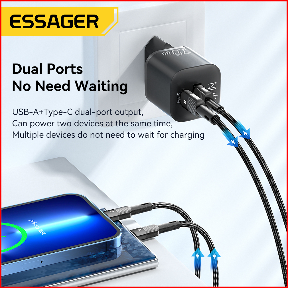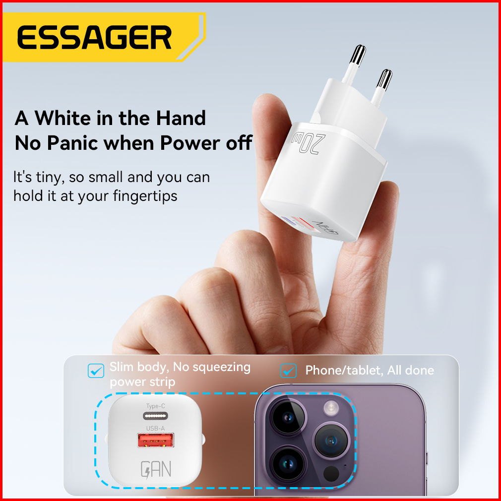 Essager 20w Gan Pengisi Daya Cepat Pengisi Daya Pengisi Daya Ponsel Qc 3.0 Usb Tipe C Pd Adapter