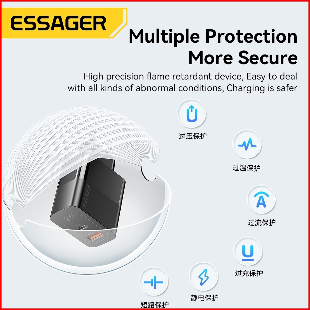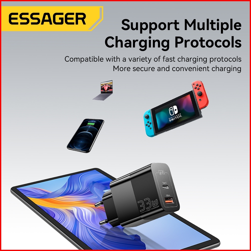 Essager Pengisi Daya Usb Type C 33w Pengisian Cepat A C Pq Qc Fast Charging Adapter
