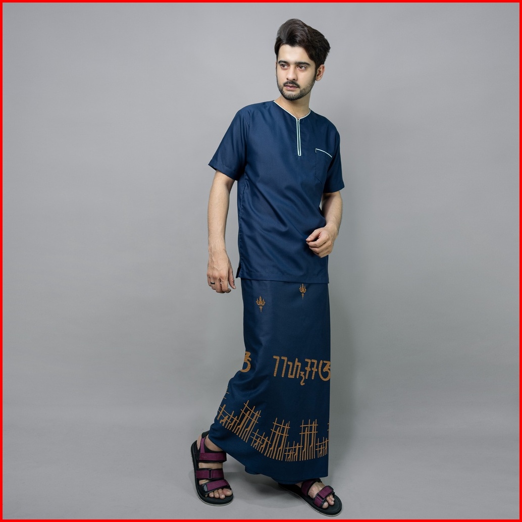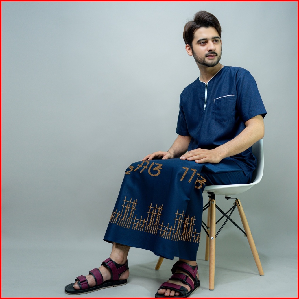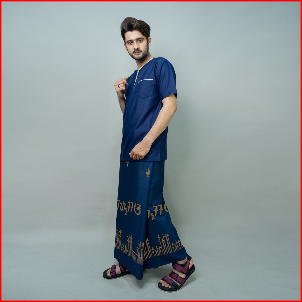 Katsae - Sarung Bordir Motif Angklung Bordir Timbul Sarung Pria Dewasa Warna Navy Sarung Sholat 100 Bordir