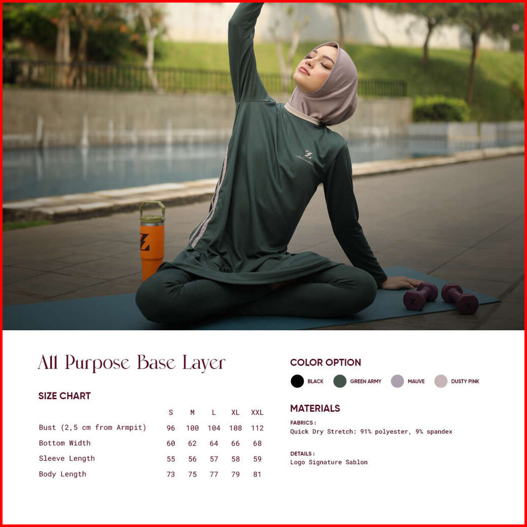 All Purpose Base Layer Army Green Zaskia Sungkar Active Zs I Atasan Sport Wanita