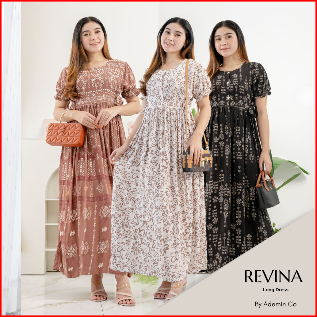 Revina Long Dress Rayon Premium Daster Panjang Busui Semata Kaki By Ademin.co