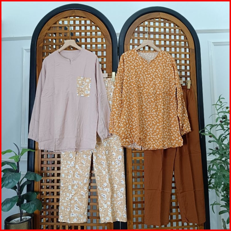 Babydoll Muslim Standar One Set Piyama Busui Piyama Lengan Panjang