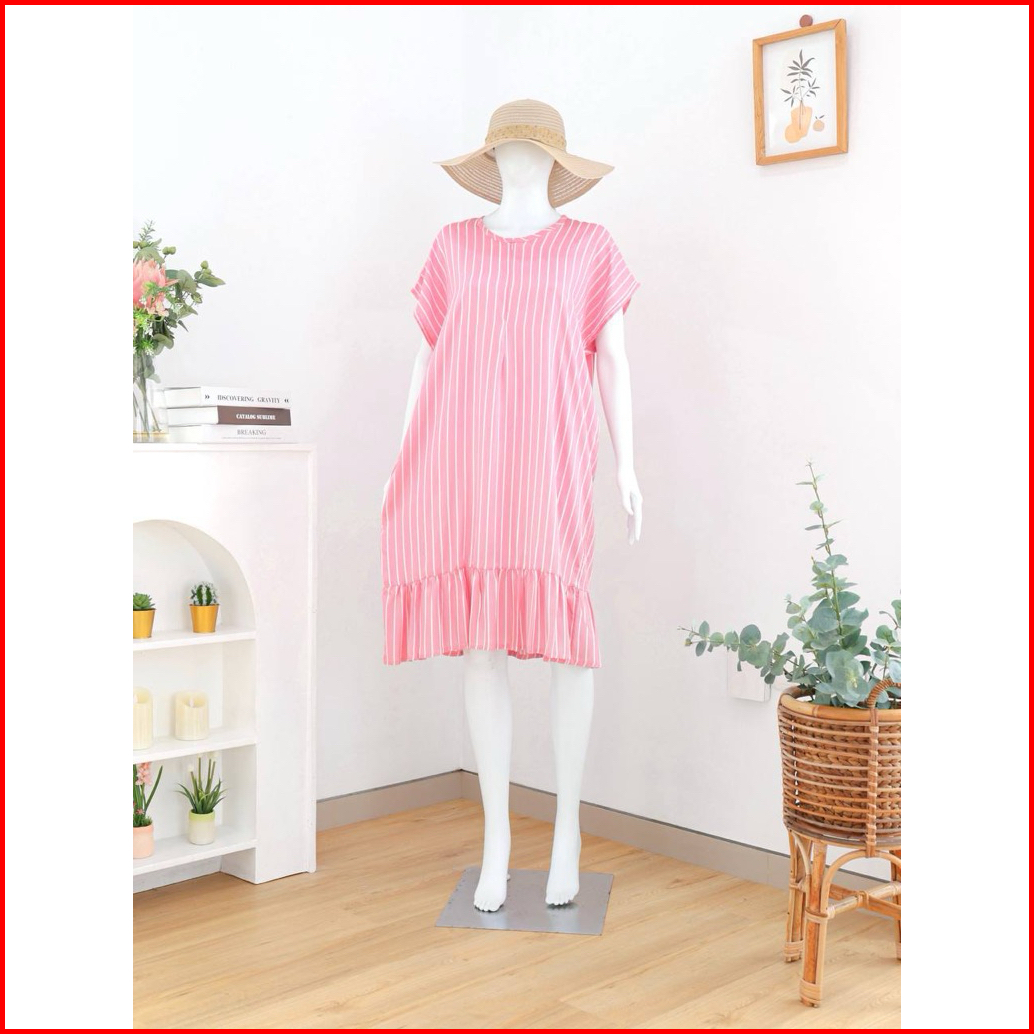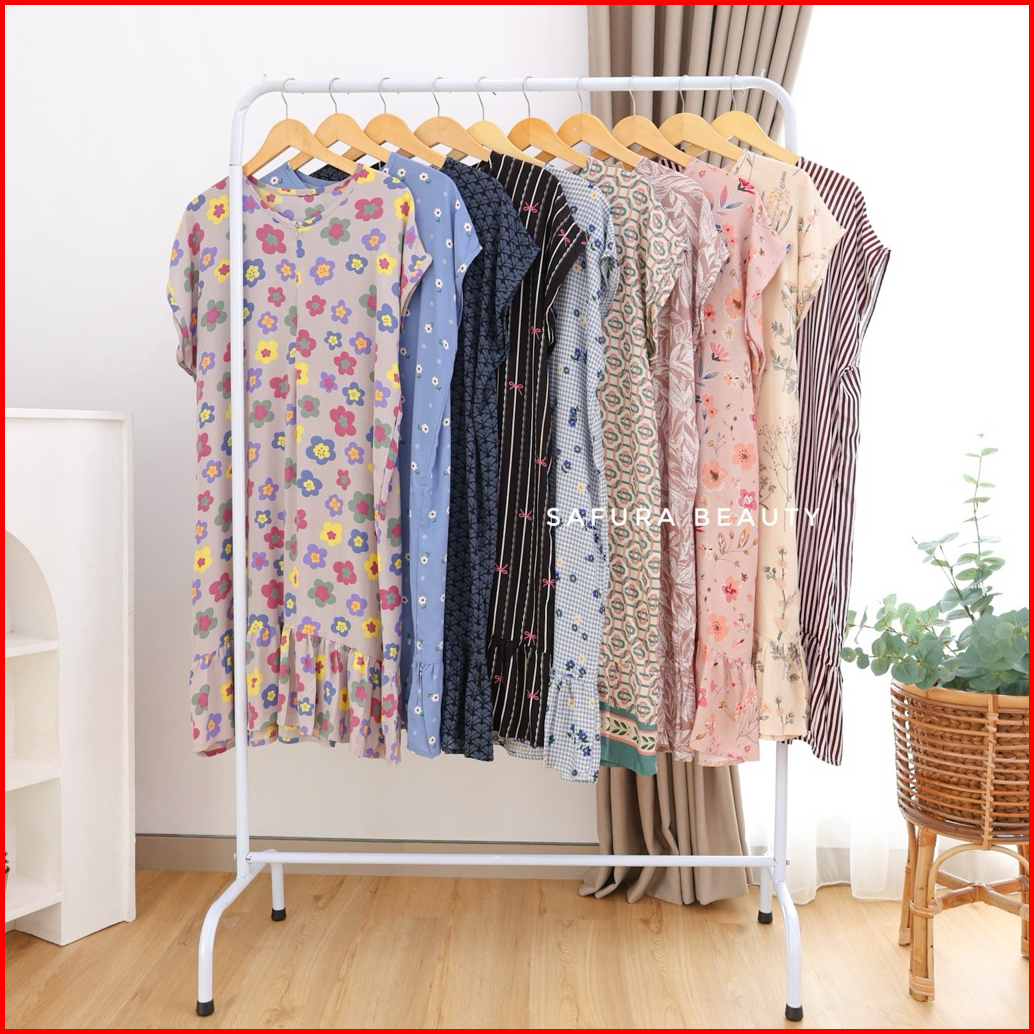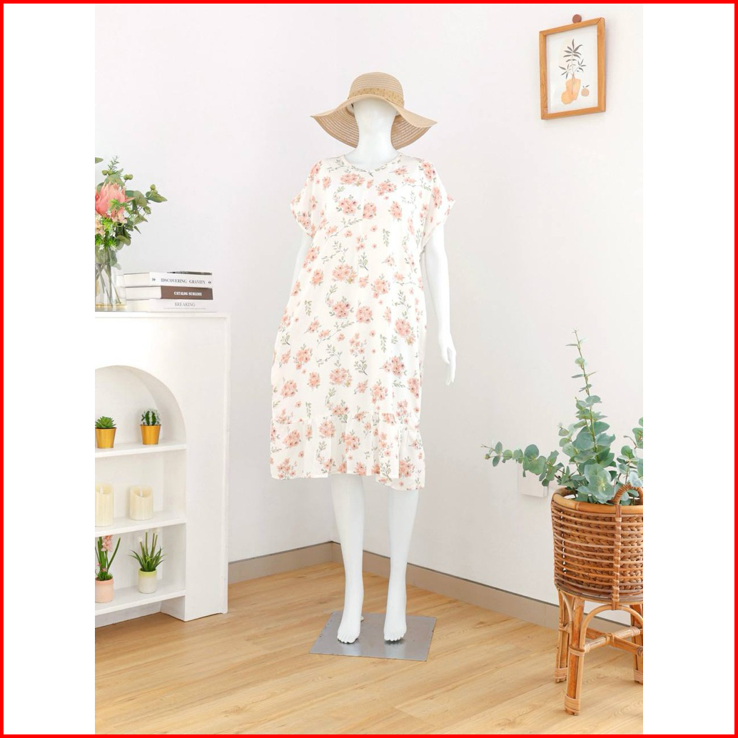 Homedress Ruffle Selutut Busui Friendly Resleting Depan Ld 120-125cm Pb 100cm Bahan Rayon Adem
