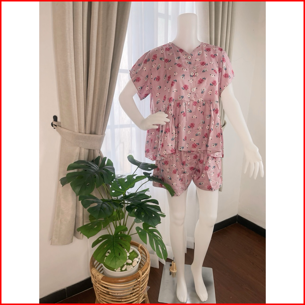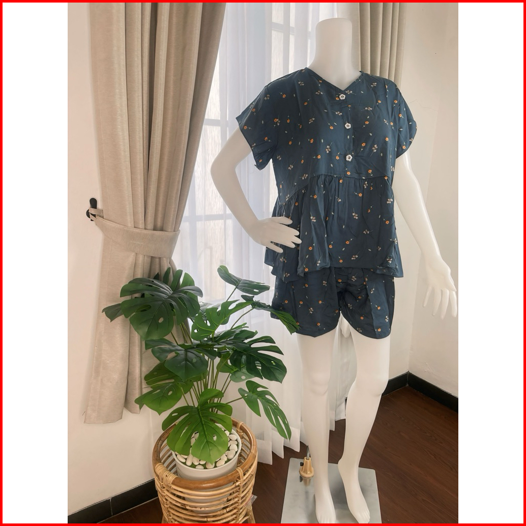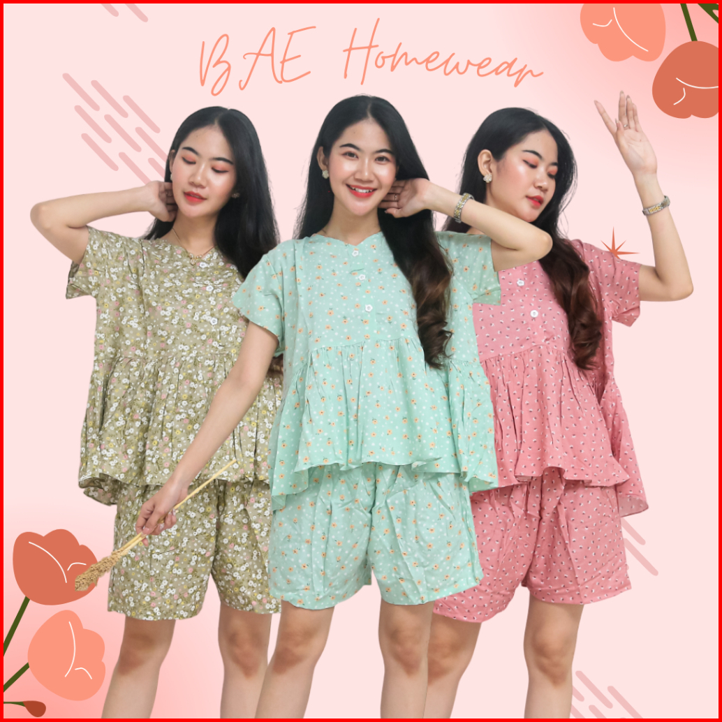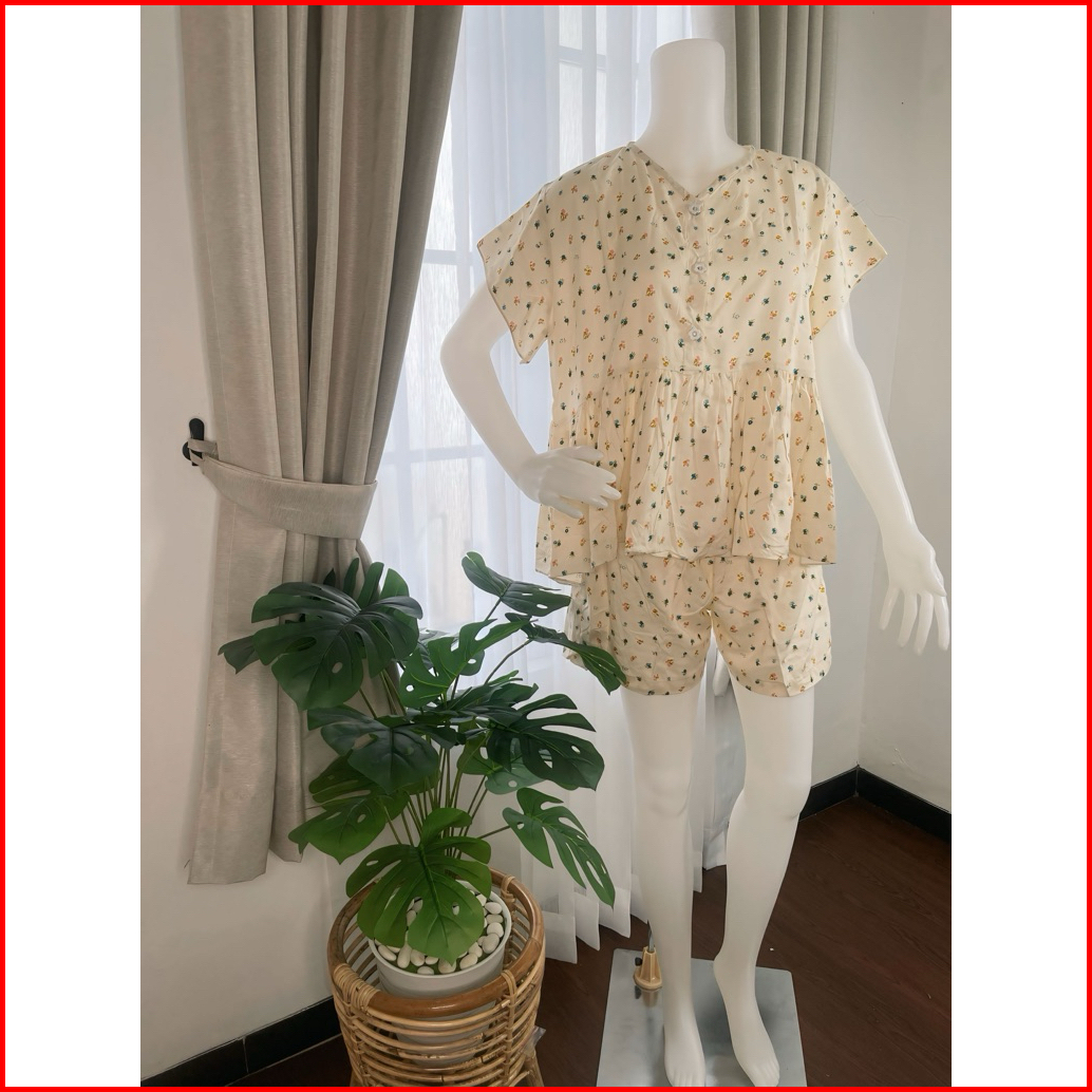 Piyama Wanita Celana Pendek Babydoll Ruffle Motif Bunga Rayon Premium Adem Nyaman
