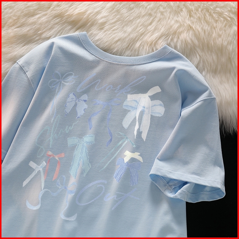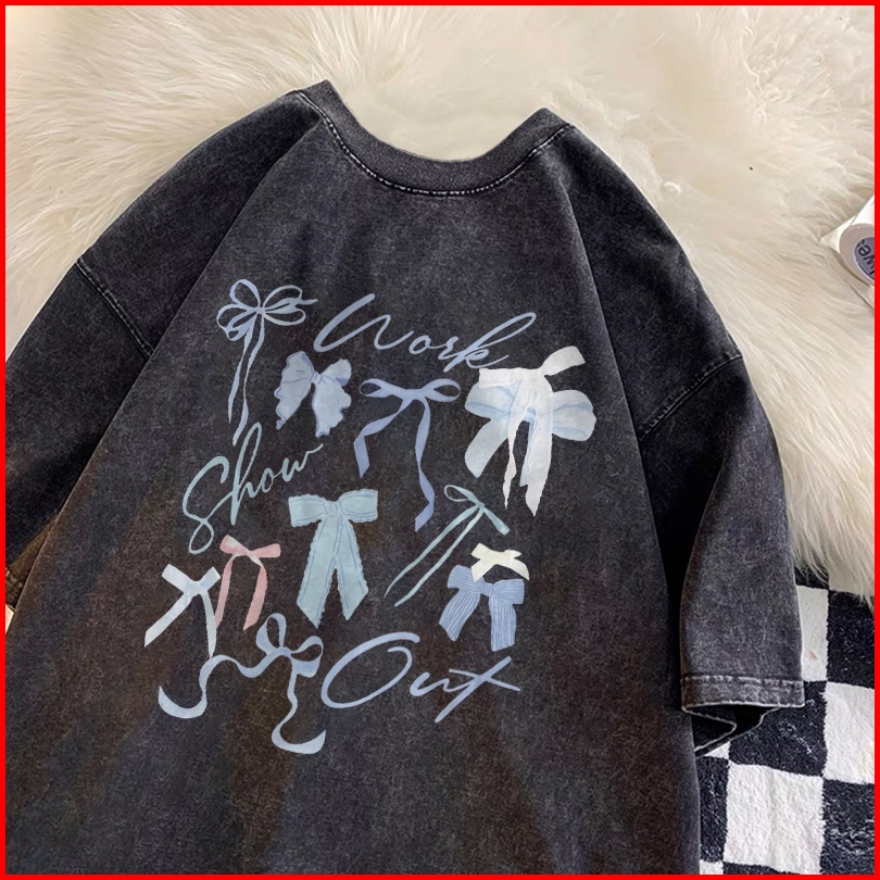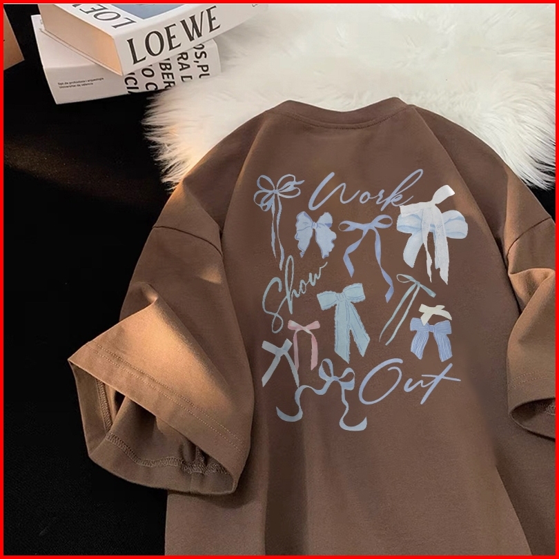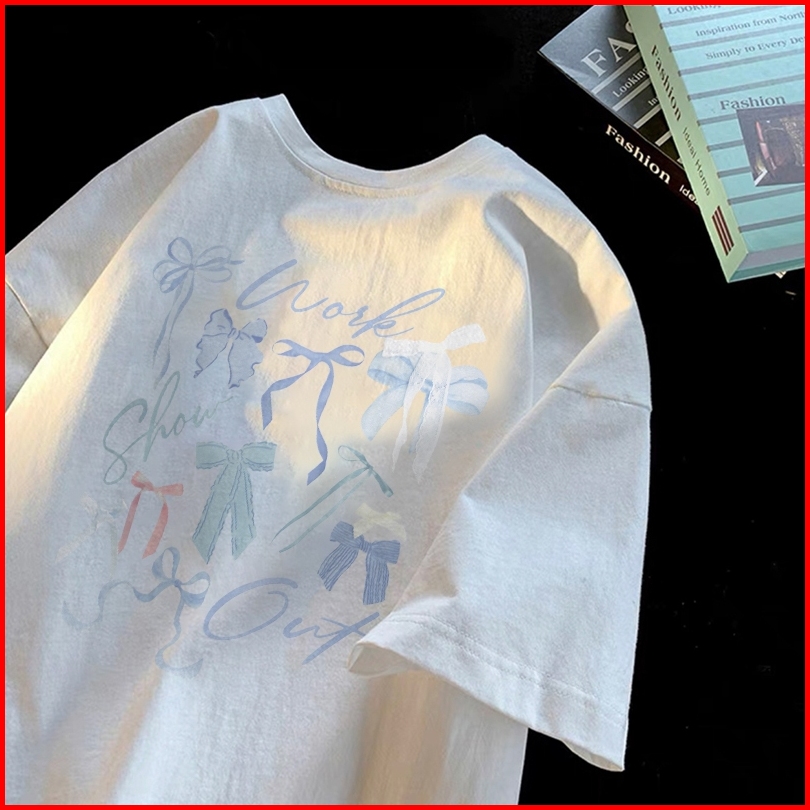 Forteid T-shirt Lengan Pendek Baju Kaos Oversize Wanita Baju Kaus Wanita Korea Baju Atasan Wanita Terbaru Cetakan Busur