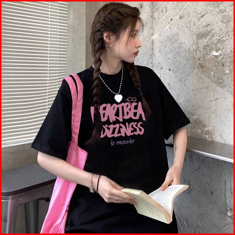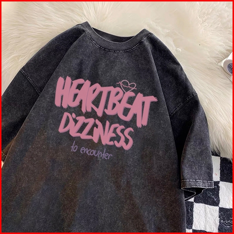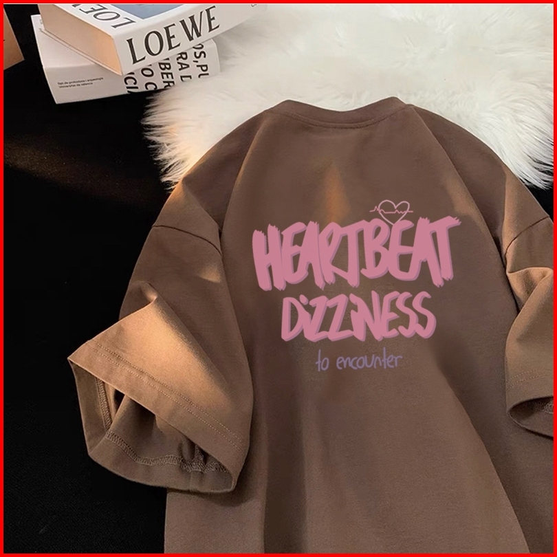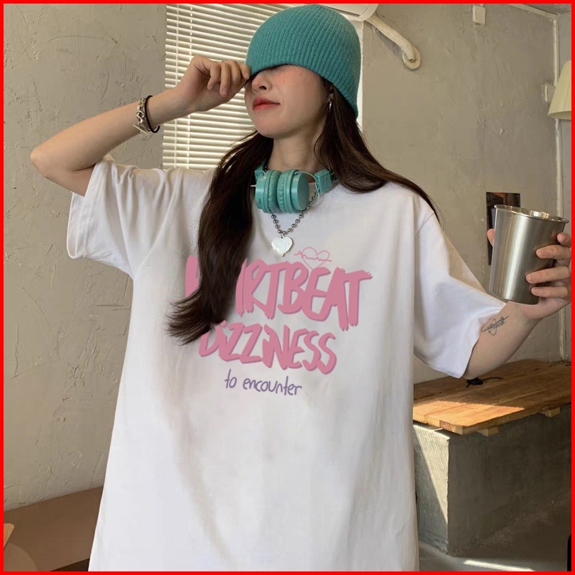 Forteid T-shirt Lengan Pendek Baju Kaos Oversize Wanita Baju Korean Style Baju Atasan Wanita Terbaru Heartbeat Dizziness