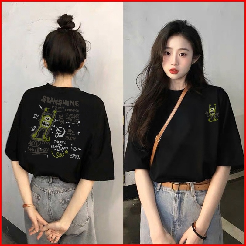 Forteid T-shirt Lengan Pendek Baju Kaos Oversize Wanita Baju Kaus Wanita Korea Baju Atasan Wanita Terbaru Cetakan Monste