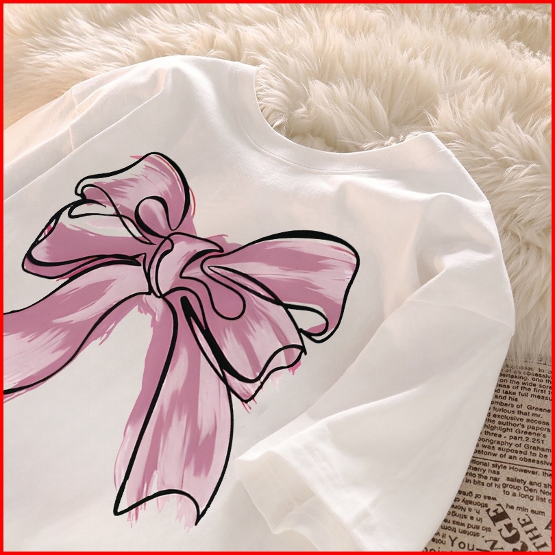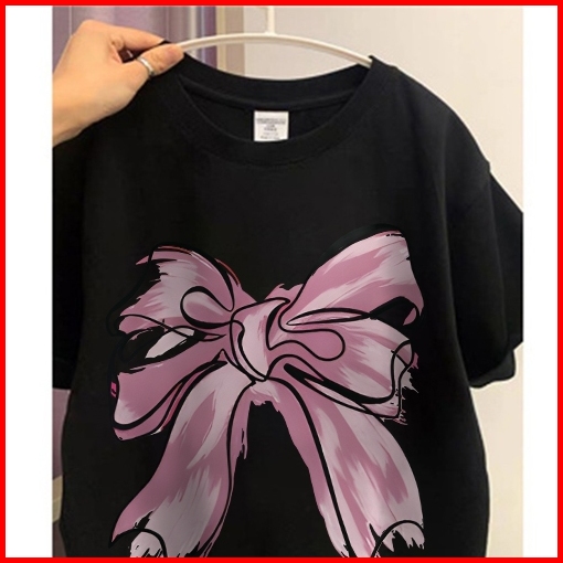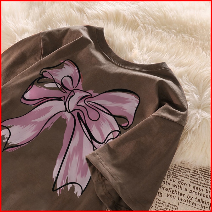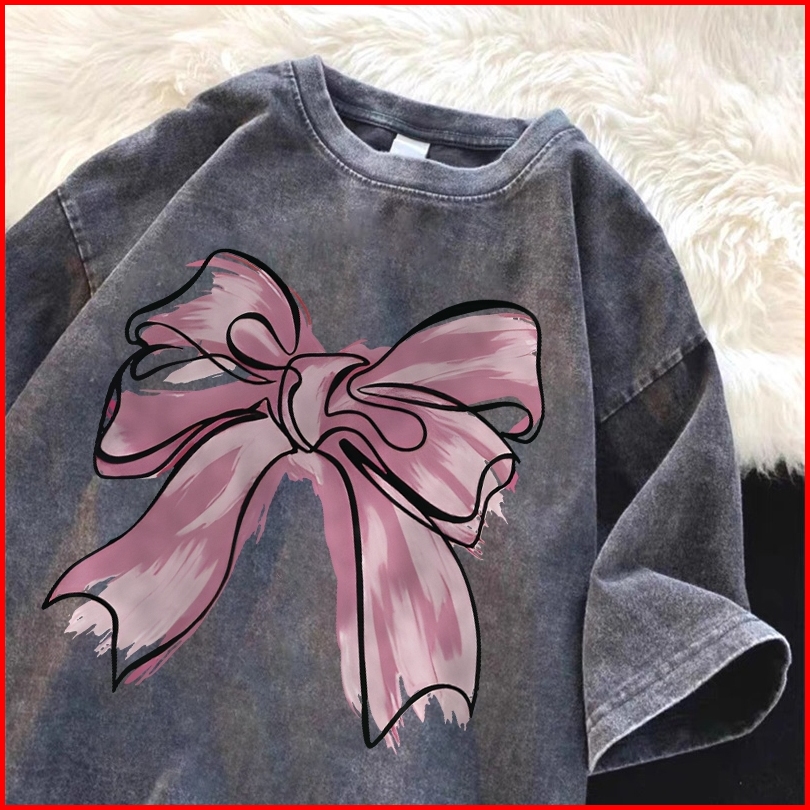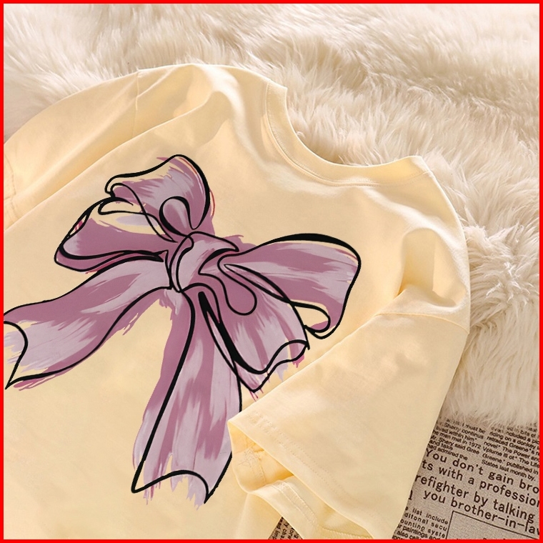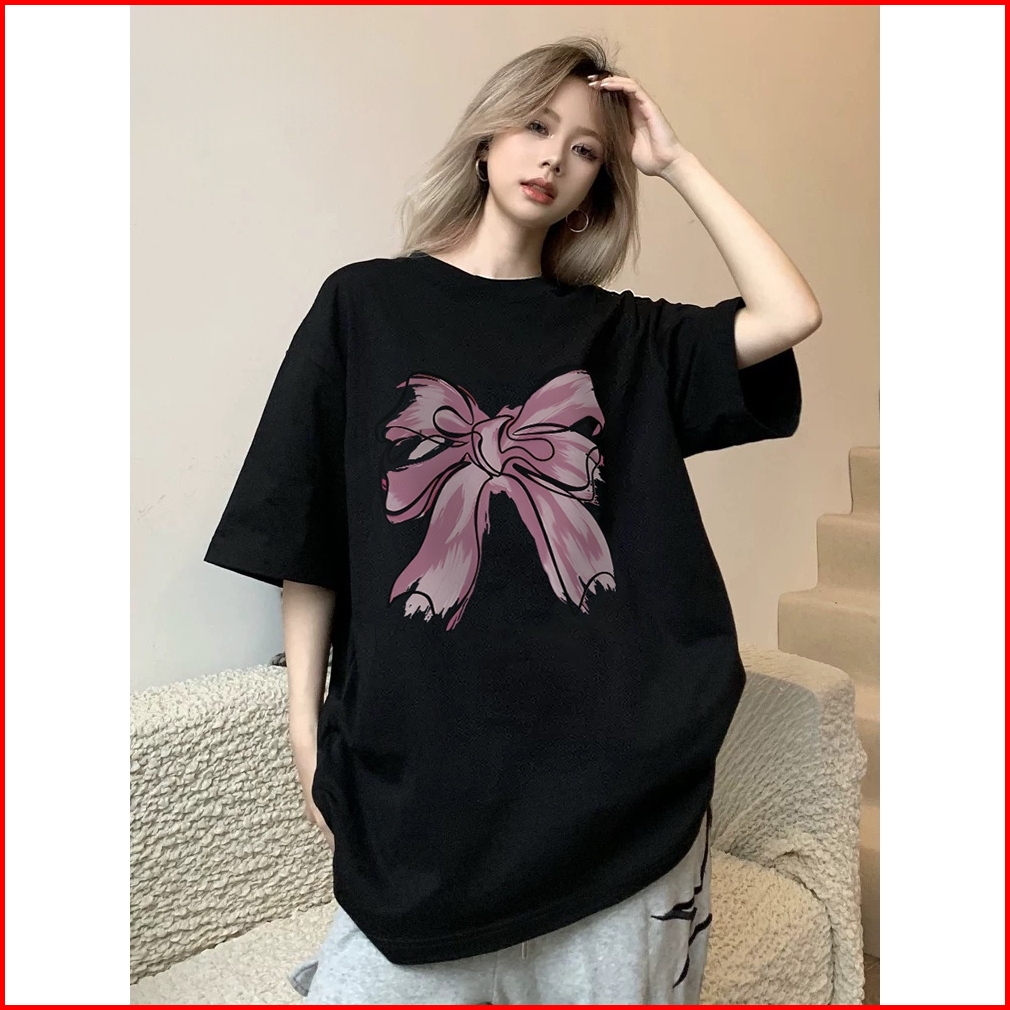 Forteid T-shirt Lengan Pendek Baju Kaos Oversize Wanita Baju Kaus Wanita Korea Baju Atasan Wanita Terbaru Cetakan Busur