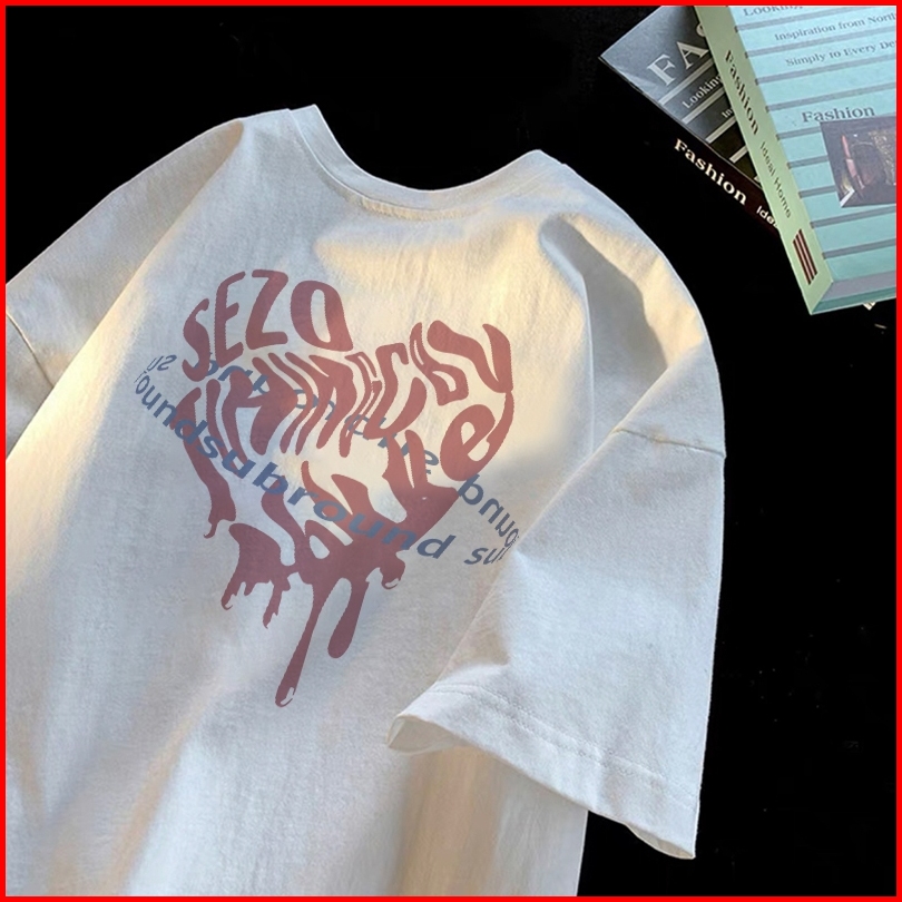 Forteid T-shirt Short Sleeve Baju Kaos Oversize Baju Sullivan T-shirt Atasan Wanita Terbaru Cetakan Surat Cinta Cotton T