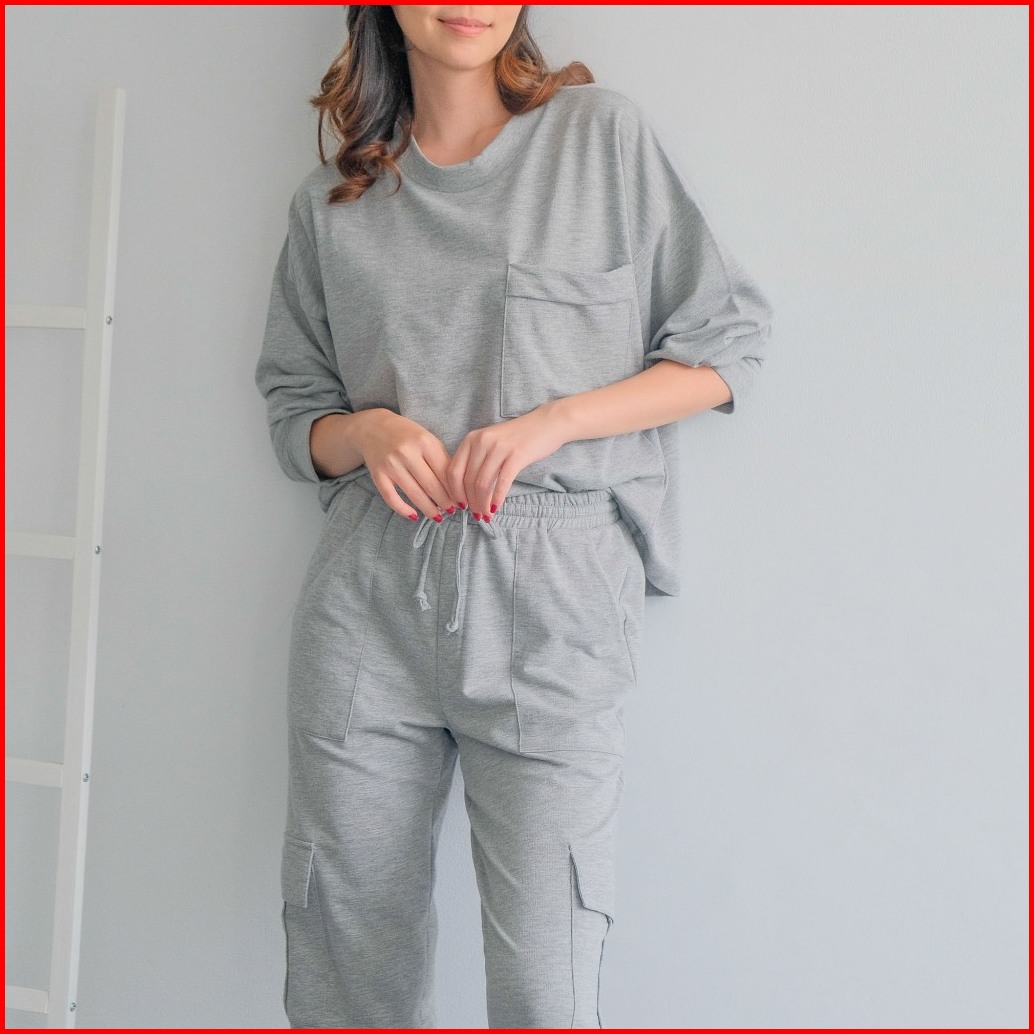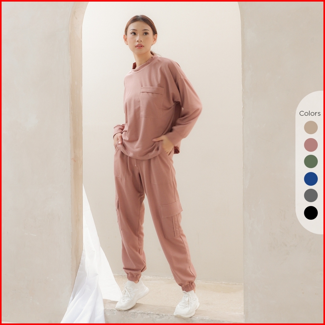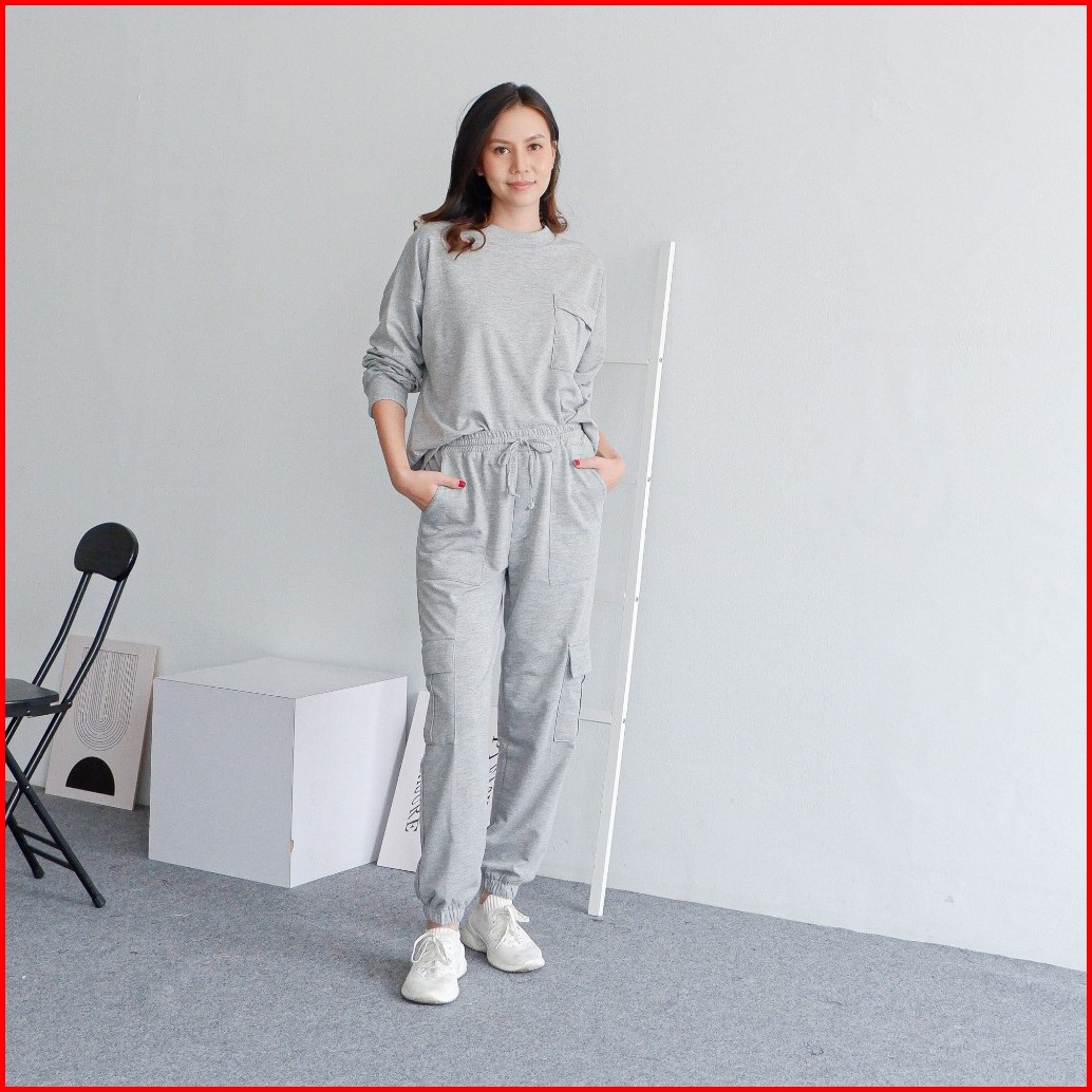 Isla Emine Set - Basic Set - Sporty - Atasan Lengan Panjang Wanita - Olahraga - Baby Terry Cotton