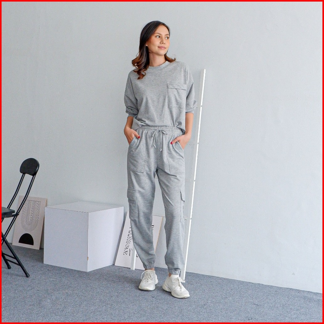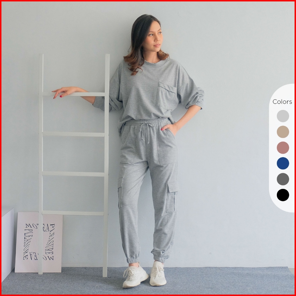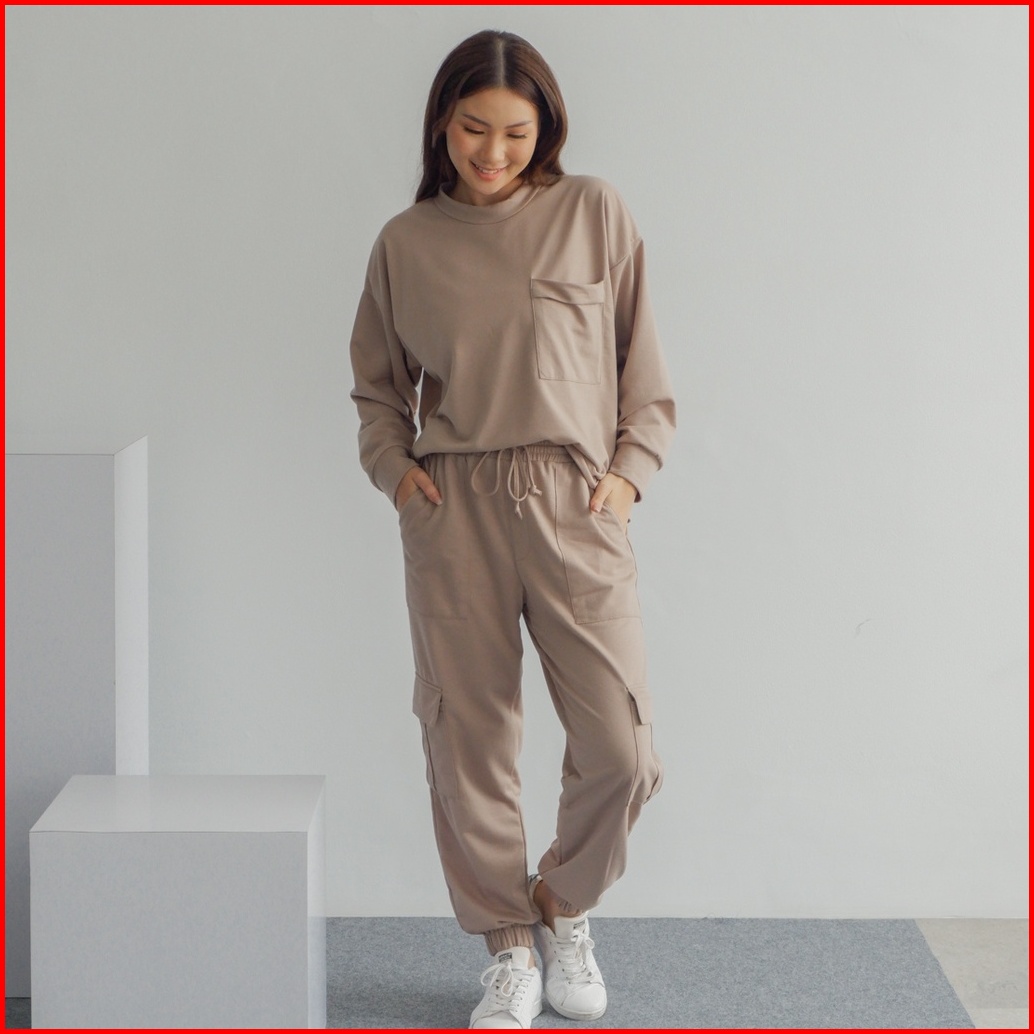Isla Emine Set - Basic Set - Sporty - Atasan Lengan Panjang Wanita - Olahraga - Baby Terry Cotton