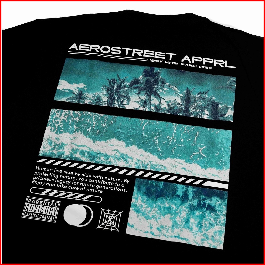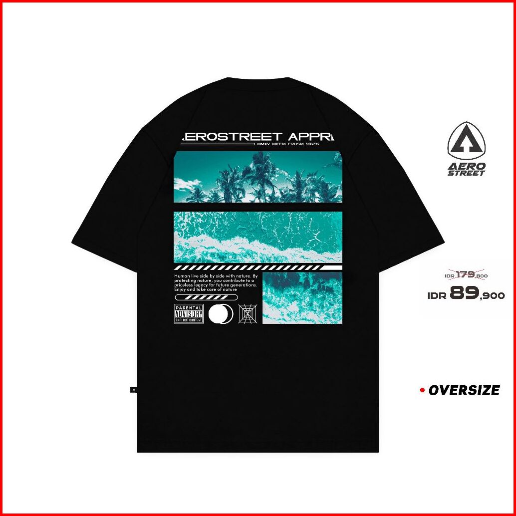Aerostreet T Shirt Oversize Palm Sea Hitam Kaos T-shirt Fadaa