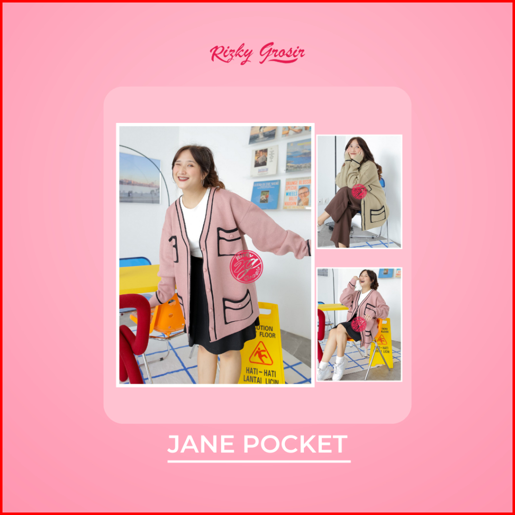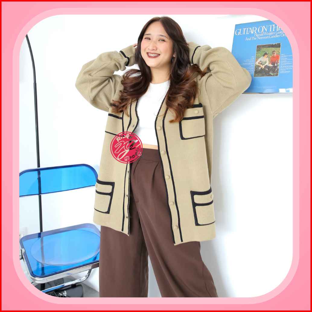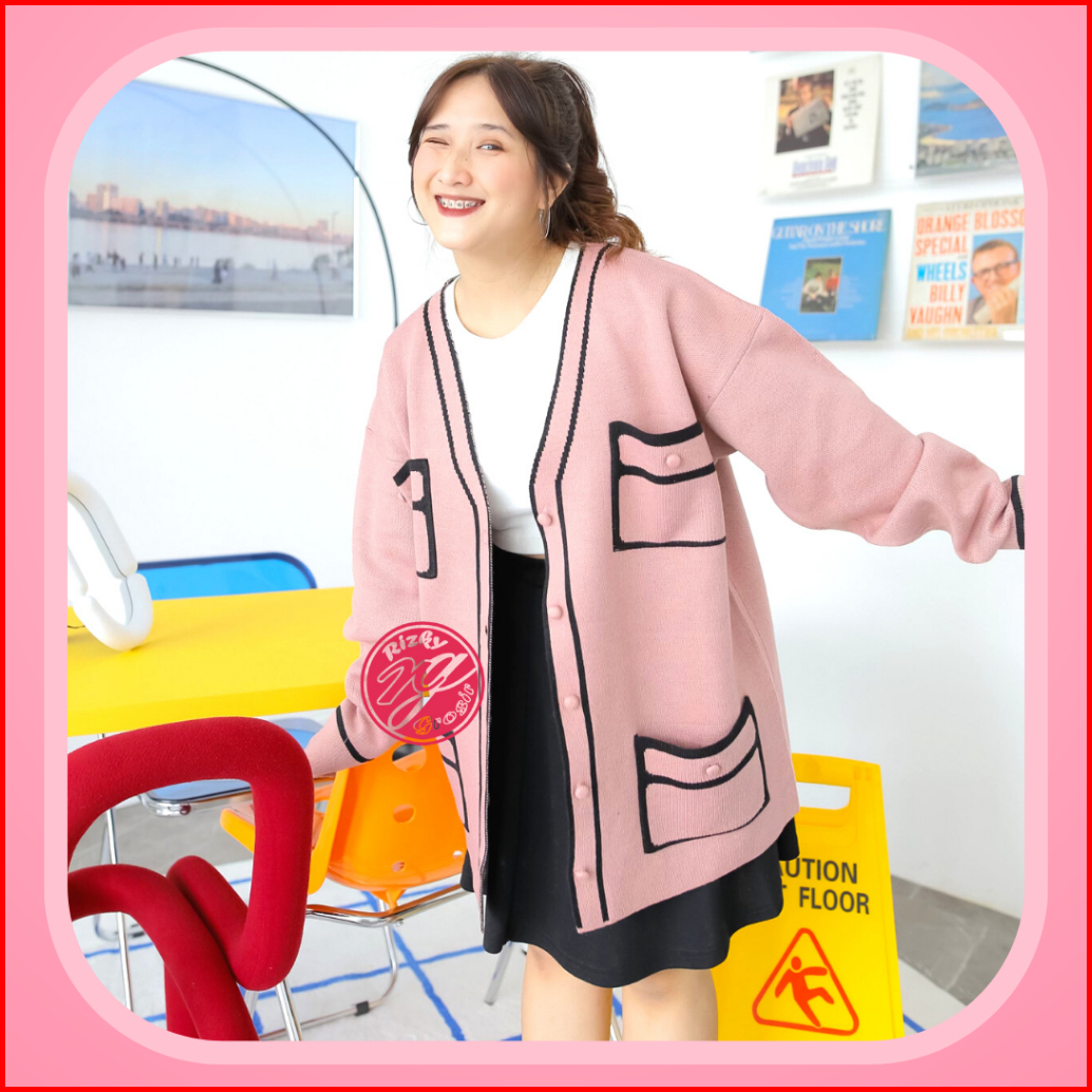 Rg Jane Cardigan Rajut Oversize Dengan 4 Kantong
