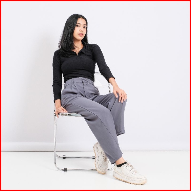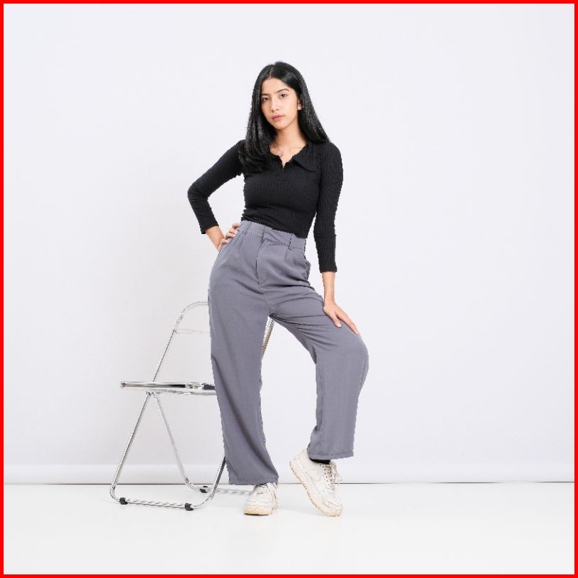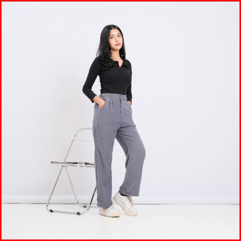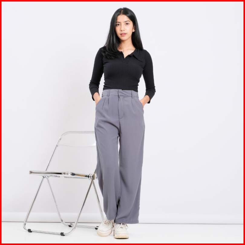 Loose Pants Trousers Wanita - Celana Kulot Anti Kusut Highwaist - Celana Kantor Formal Casual