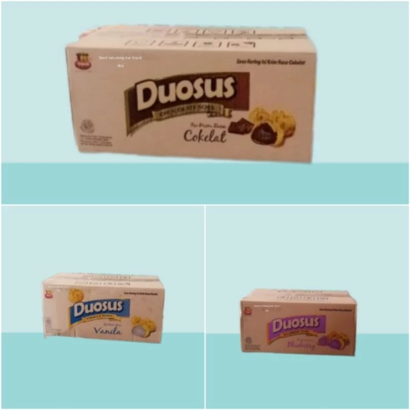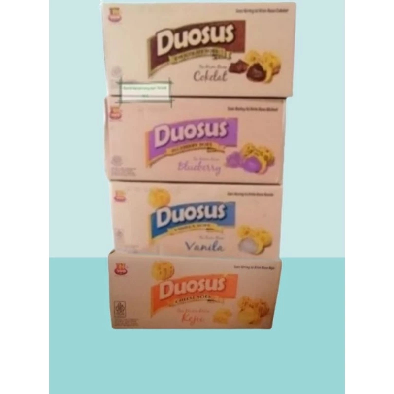 Duosus Kue Soes Kering Cemilan Enak Duo Sus Cokelat / Blueberry 1Dus / Karton Isi 30 Pcs 30 Gr