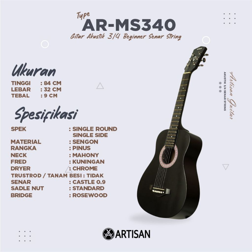 ARTISAN Gitar Akustik 3/4 Beginner AR - MS340 Senar String Guitar