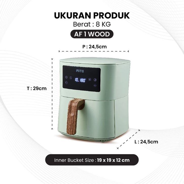 Mito Air Fryer AF1 V2 4L Low Watt Original - Mesin Penggoreng Tanpa Minyak Anti Lengket - Hemat Listrik - Green