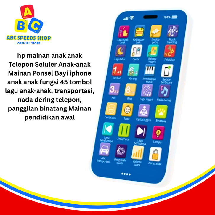 HP MAINAN ANAK ANAK TELEPON SELULER ANAK-ANAK MAINAN PONSEL BAYI IPHONE ANAK ANAK FUNGSI 45 TOMBOL LAGU ANAK-ANAK