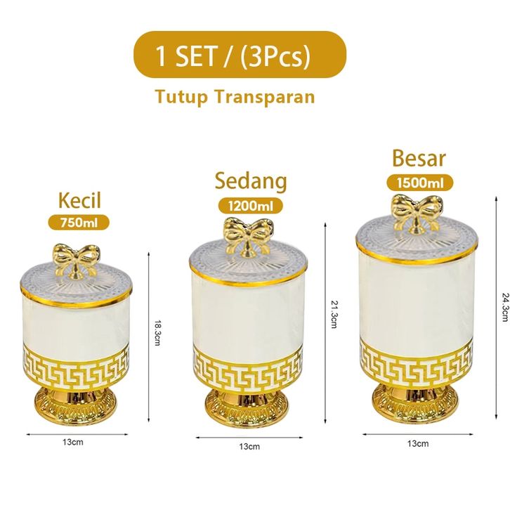 Transparan Set(3pcs), Hitnam Set(3pcs) , Putih(tutup putih)