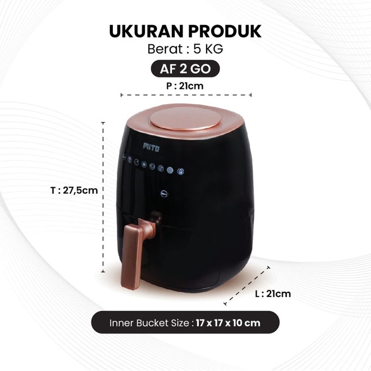 MITO Air Fryer Digi Fry Go AF2 3L Digital Low Watt Mesin Penggoreng Tanpa Minyak Garansi Resmi - Black Gold